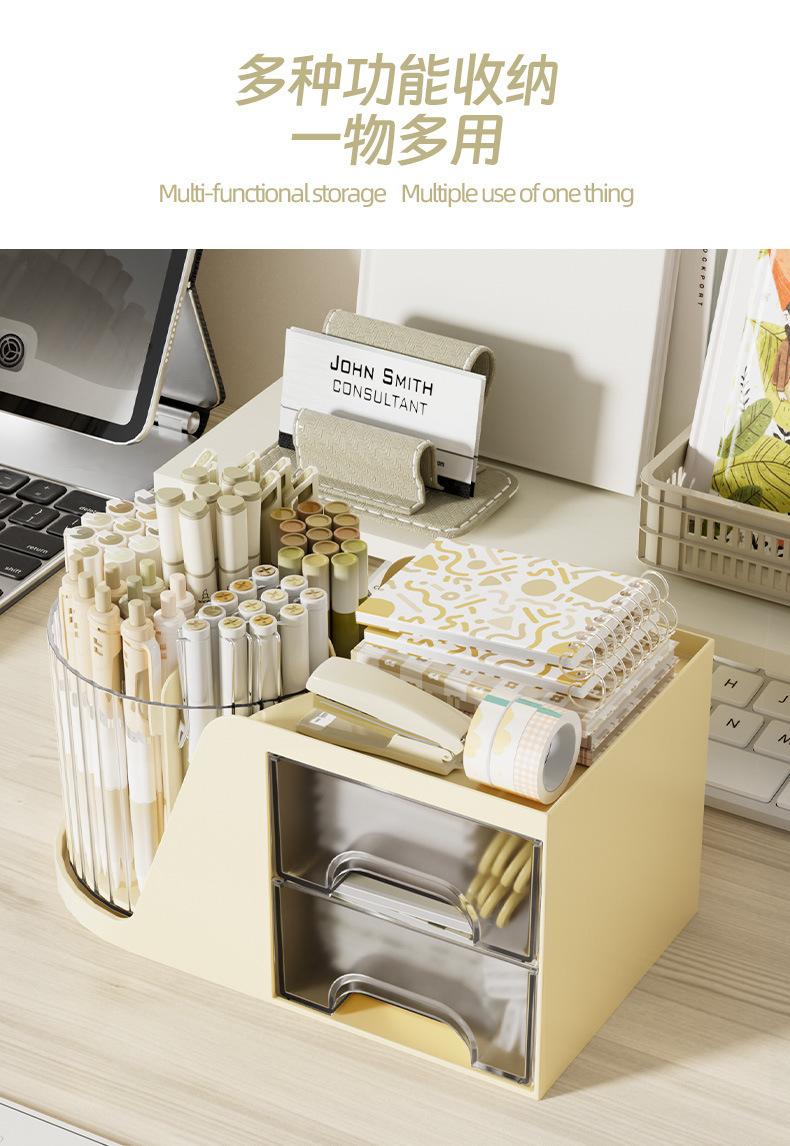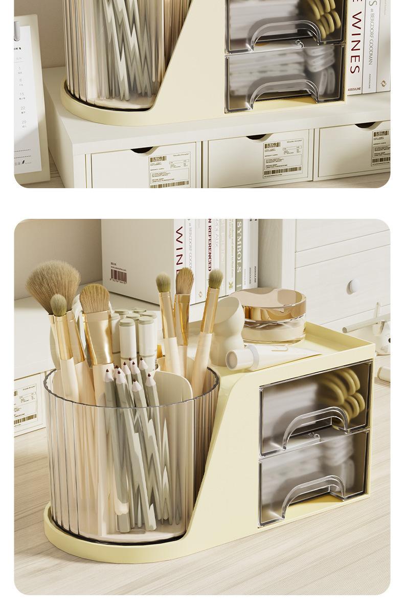 Caja de almacenamiento de escritorio giratoria para brochas de maquillaje, tubo de almacenamiento para cosméticos, tocador, lápiz labial, sombra de ojos, soporte para bolígrafo, estante de almacenamiento