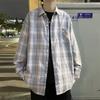 Camisa de manga larga a cuadros para hombre, nueva camisa holgada de estilo coreano, chaqueta de pareja estilo Hong Kong, primavera y verano