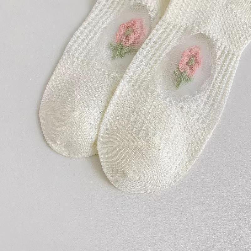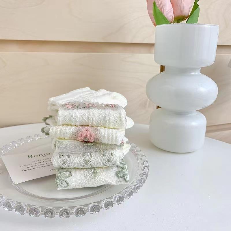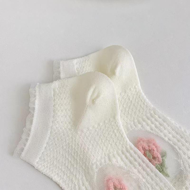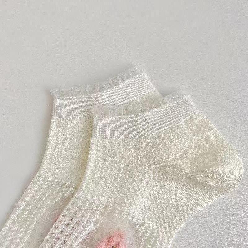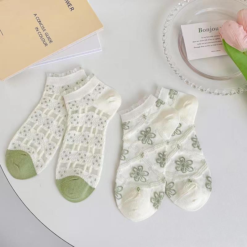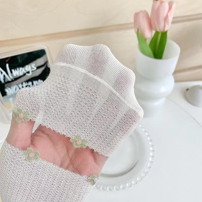 Calcetines Invisibles Transpirables Absorbentes de Sudor de Verano para Mujer, Calcetines Cortos de Primavera y Verano, Calcetines Dulces Florales Japoneses para Mujer Venta al por Mayor Estilo Verano