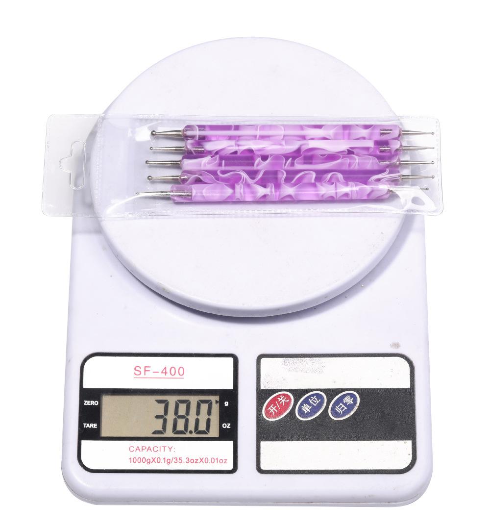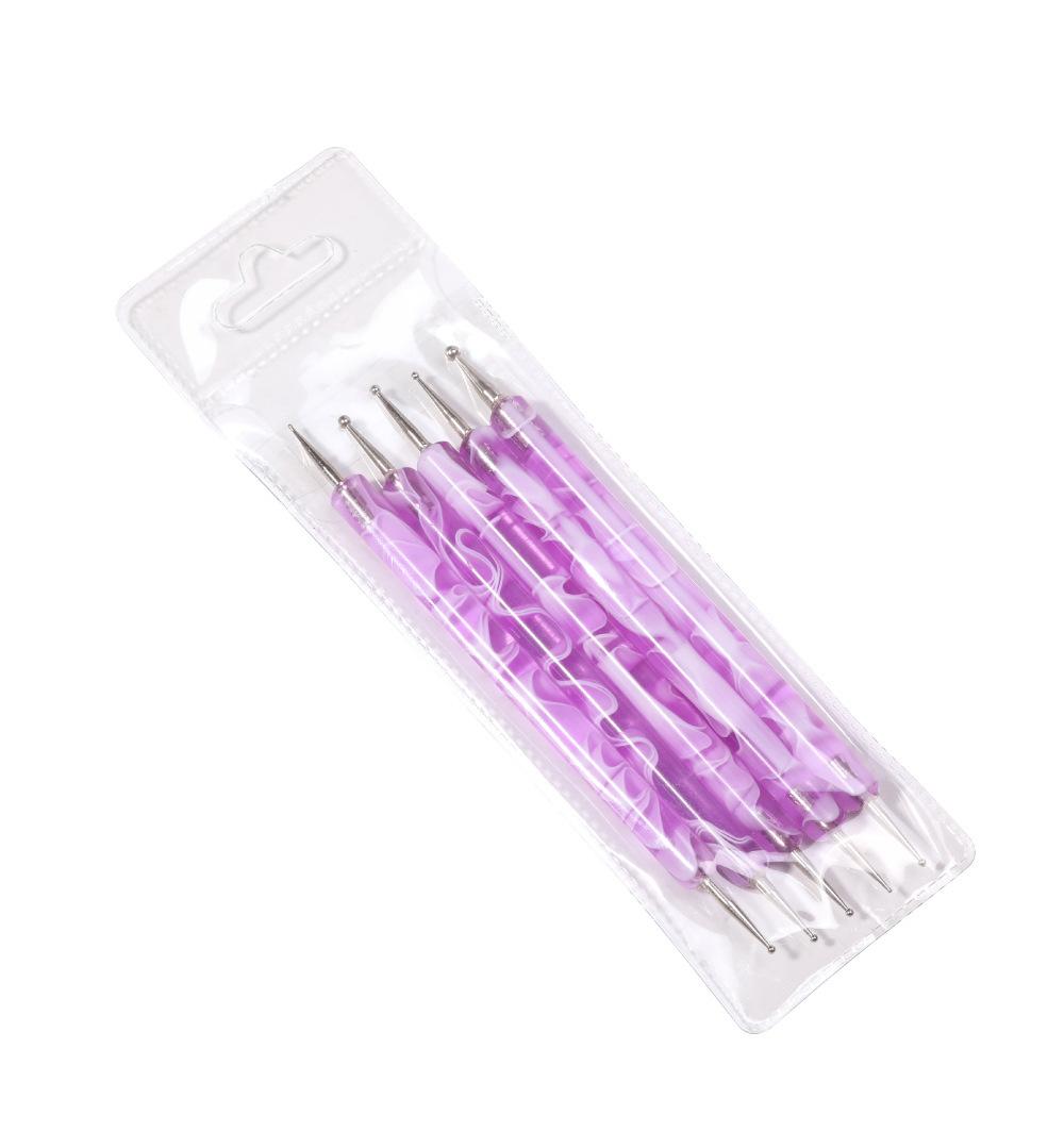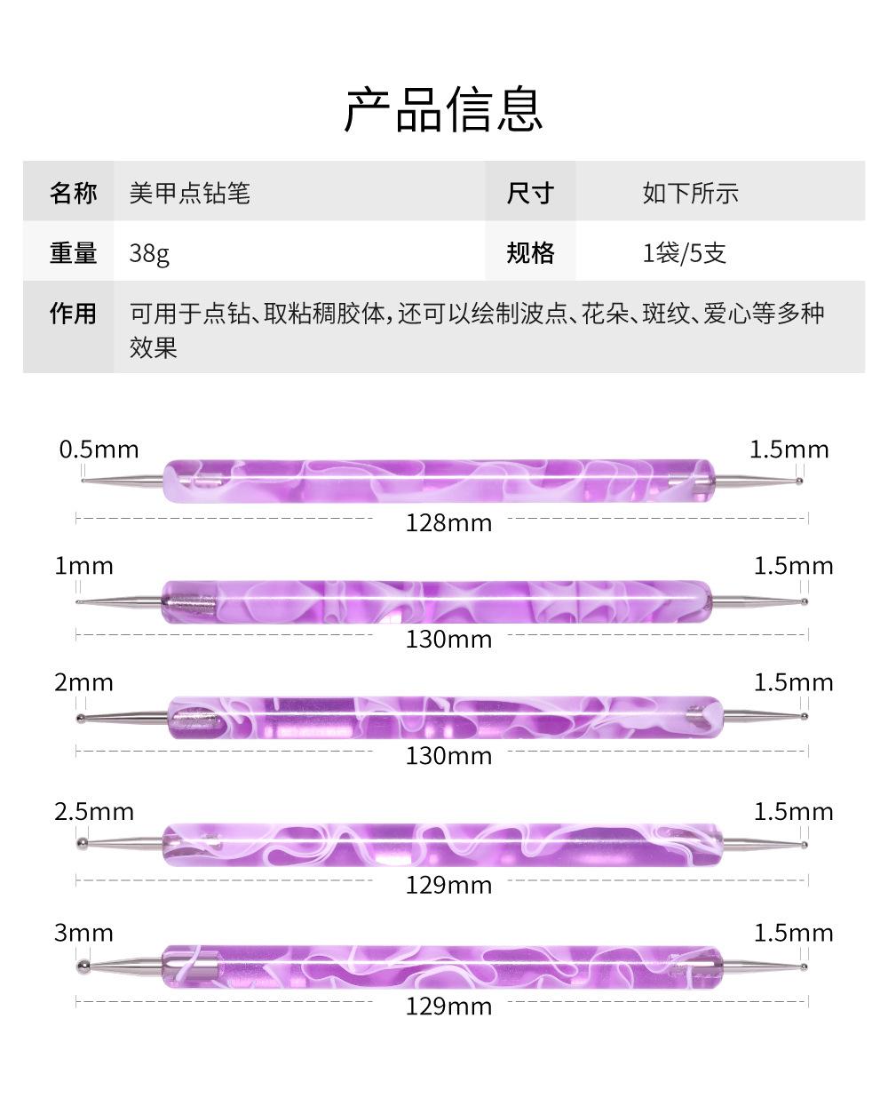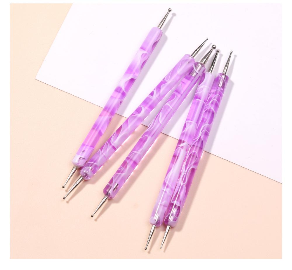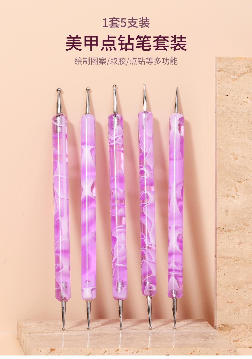 Paquete de 5 bolígrafos de punta ondulada acrílica para decoración de uñas, bolígrafos de punta de flor, agujas para decoración de uñas.