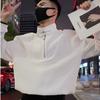 Suéter de media cremallera para hombre, primavera y otoño, estilo retro japonés, cuello alto, chaqueta deportiva informal holgada, ropa de moda