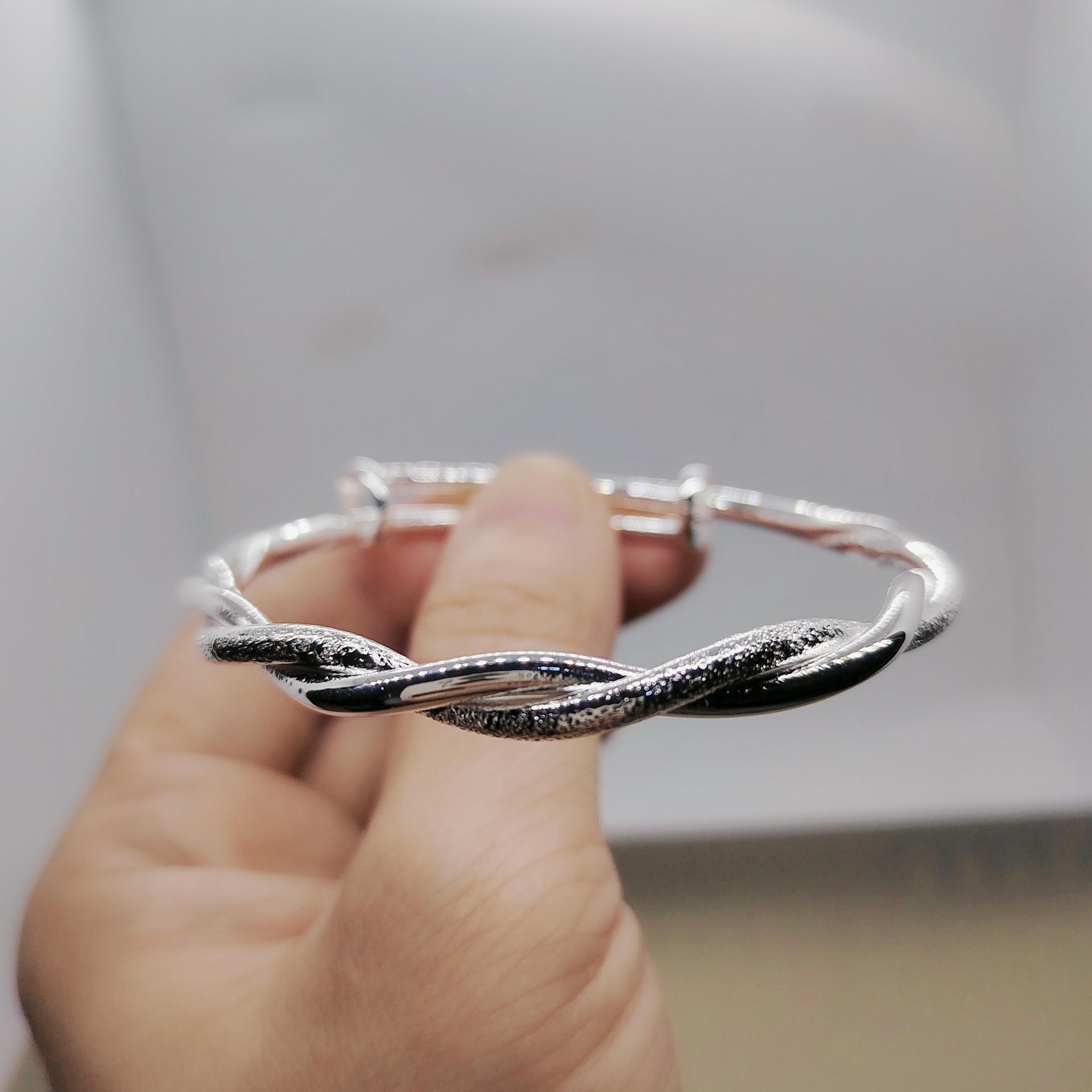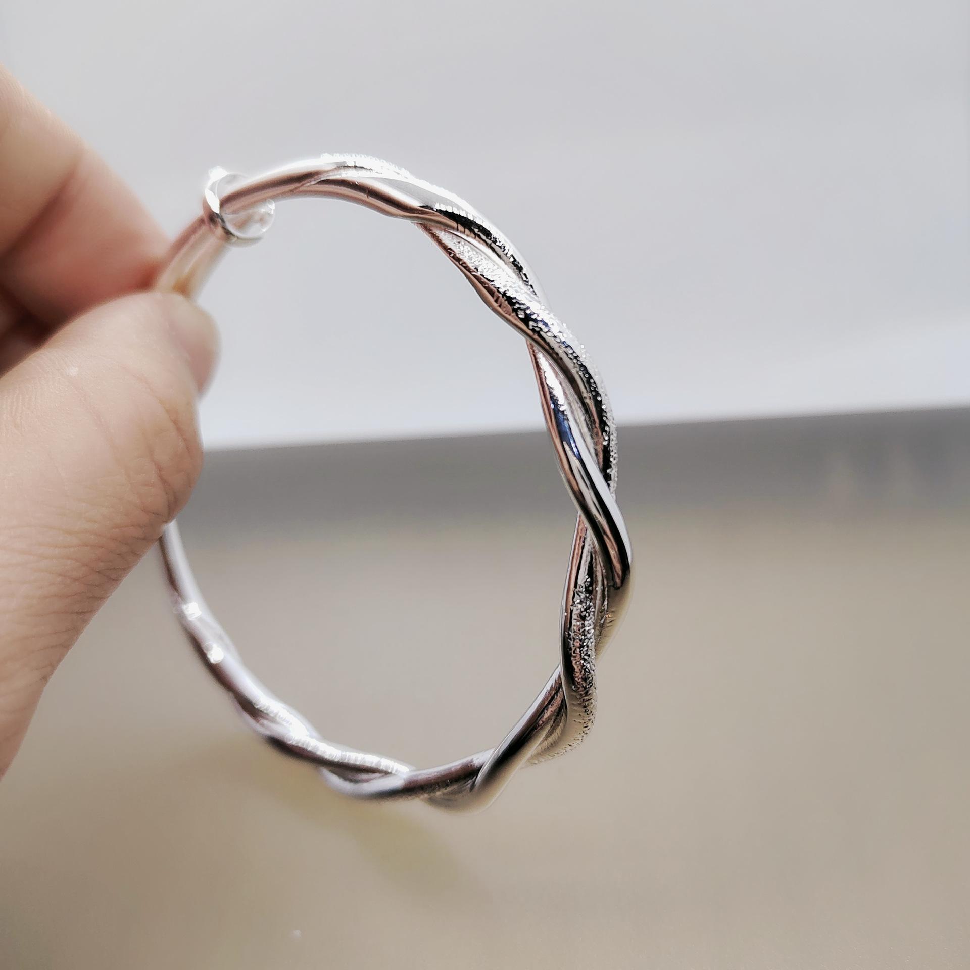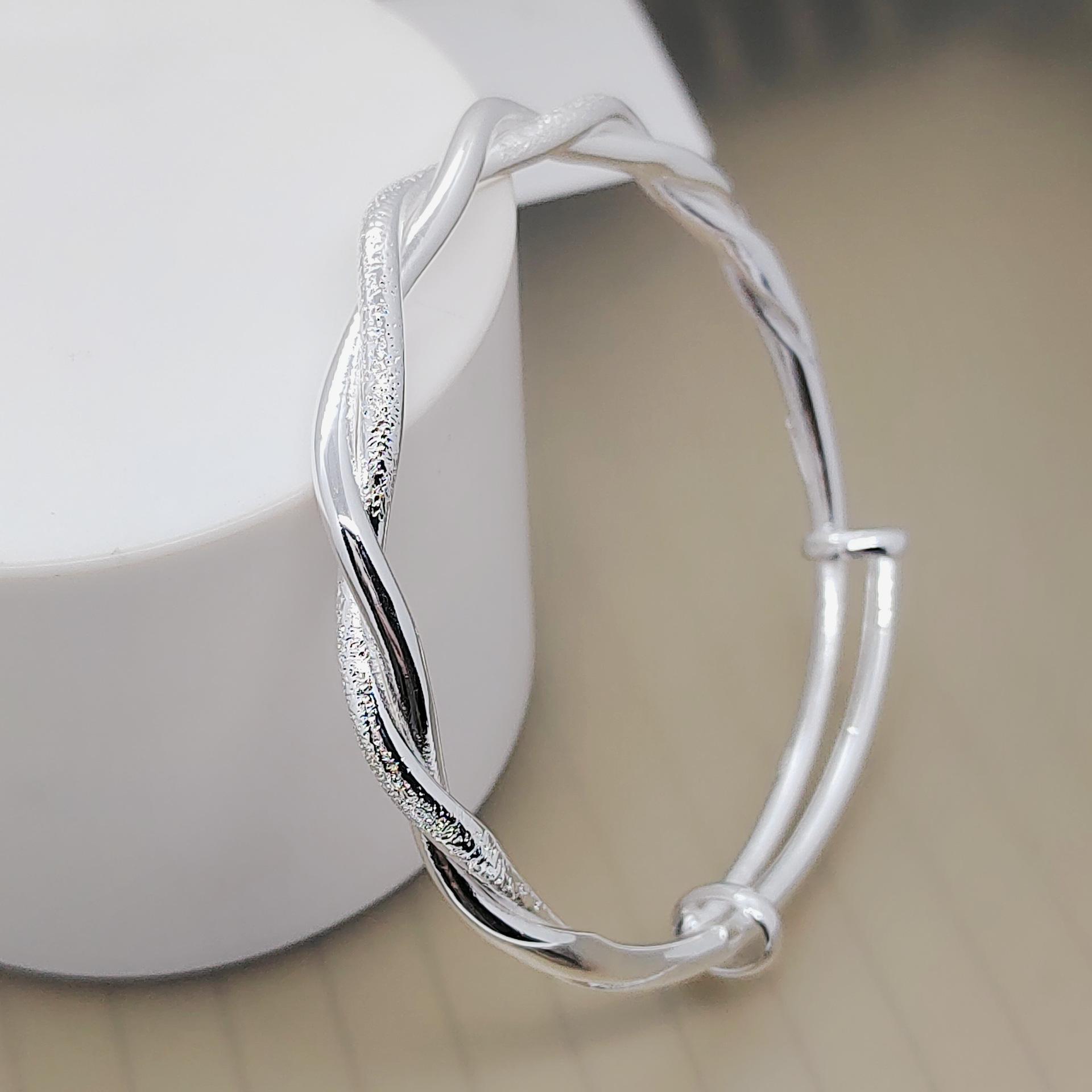 Pulsera Mobius Plateada Redonda Línea Rostro Brillante Esmerilado Patrón Cáñamo Joven Sólida Push-Pull para Novias