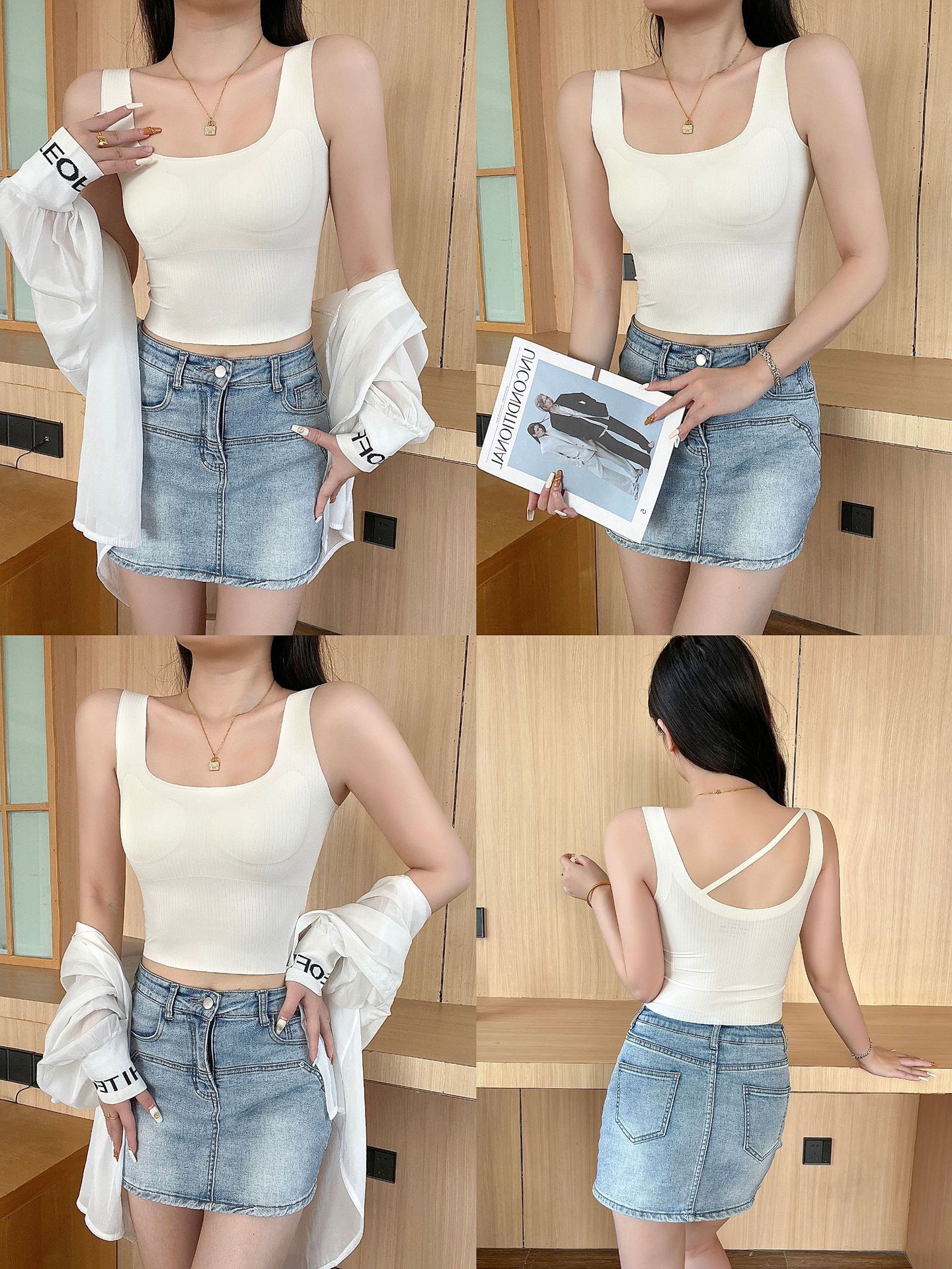 Íntimos estilo chaleco de primavera y verano para mujer, Versátil copa mango semicubierta, Hermosa espalda, Push-up, Senos laterales, Sujetador para usar como prenda exterior, Sin espalda