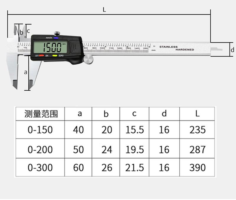 Calibrador Electrónico 150mm 200mm 300mm Acero Inoxidable Herramienta de Medición Calibrador Vernier Calibrador Digital