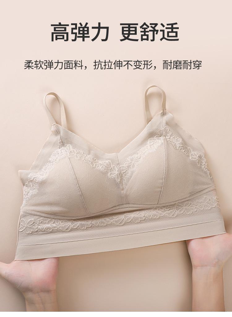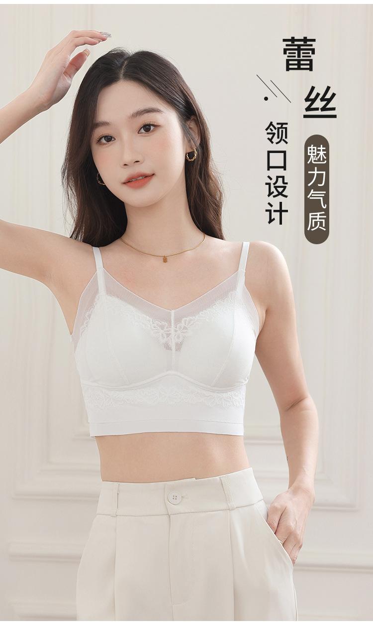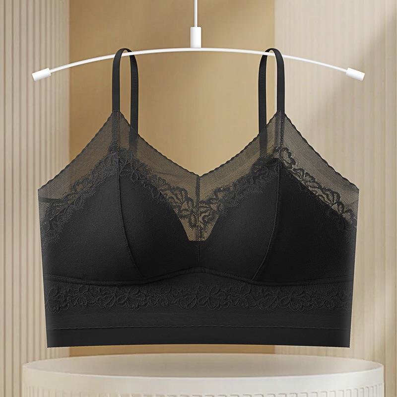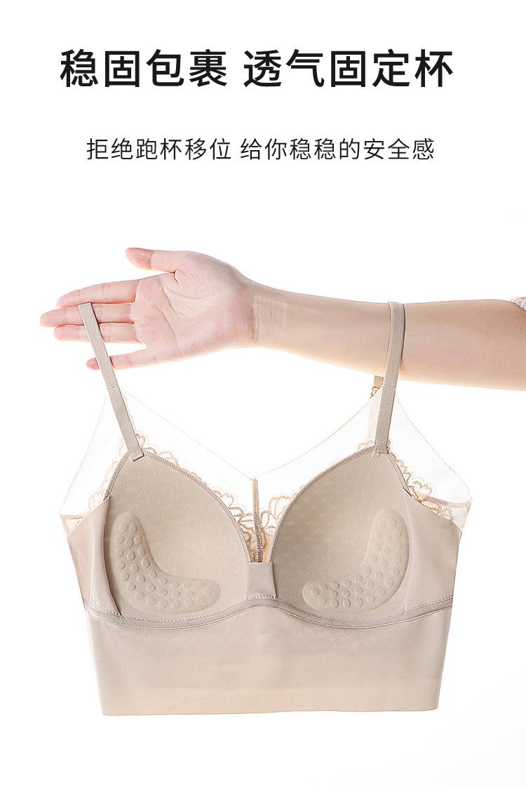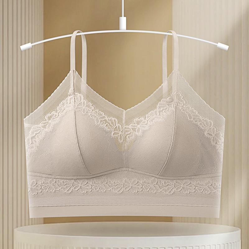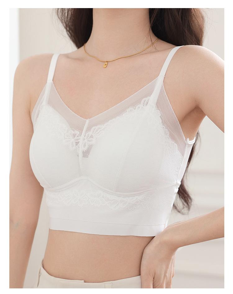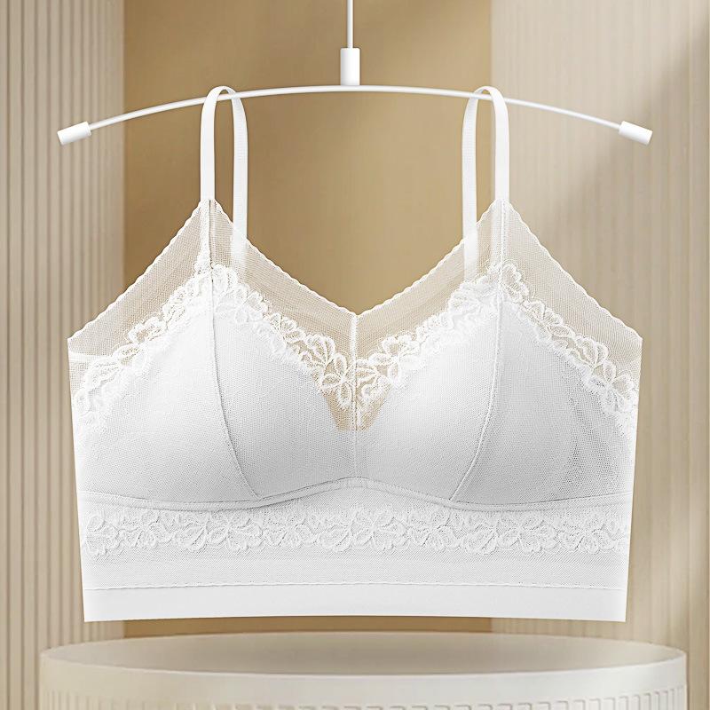 Nuevo estilo encaje francés primavera y verano seda de hielo sin costuras transpirable envoltura de pecho cómodo inalámbrico pecho pequeño push up tirantes ropa interior short
