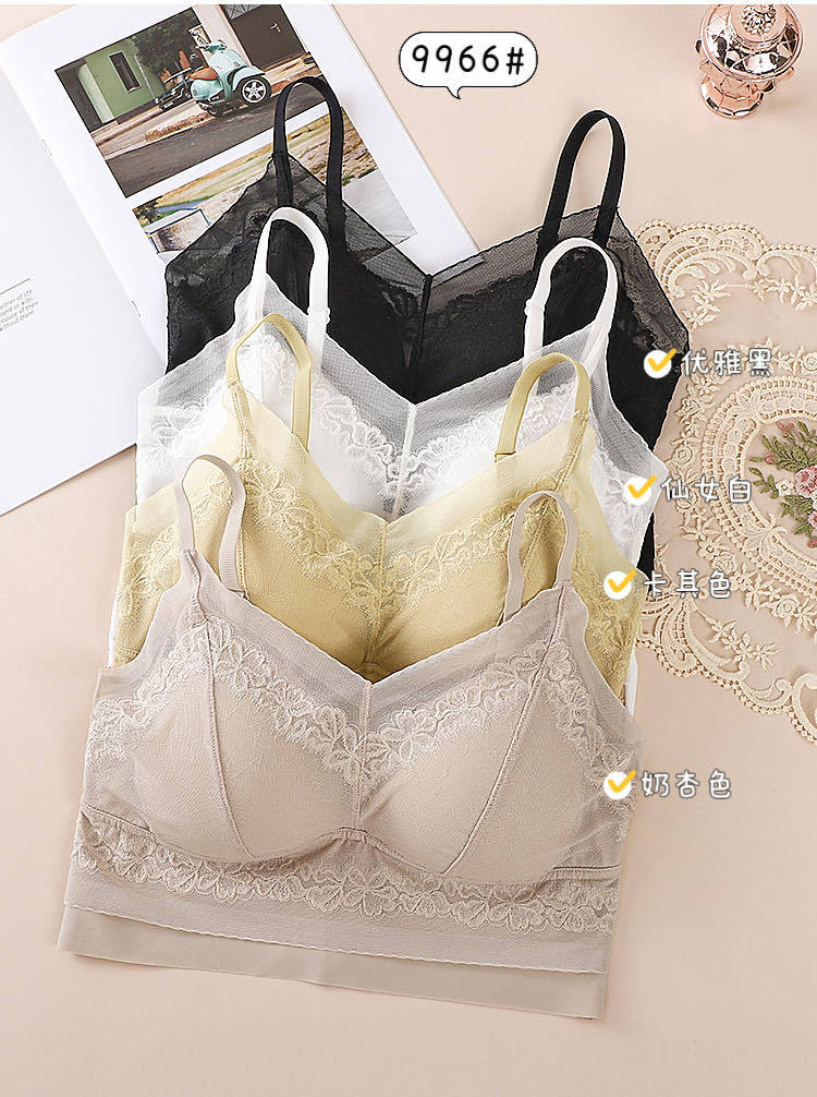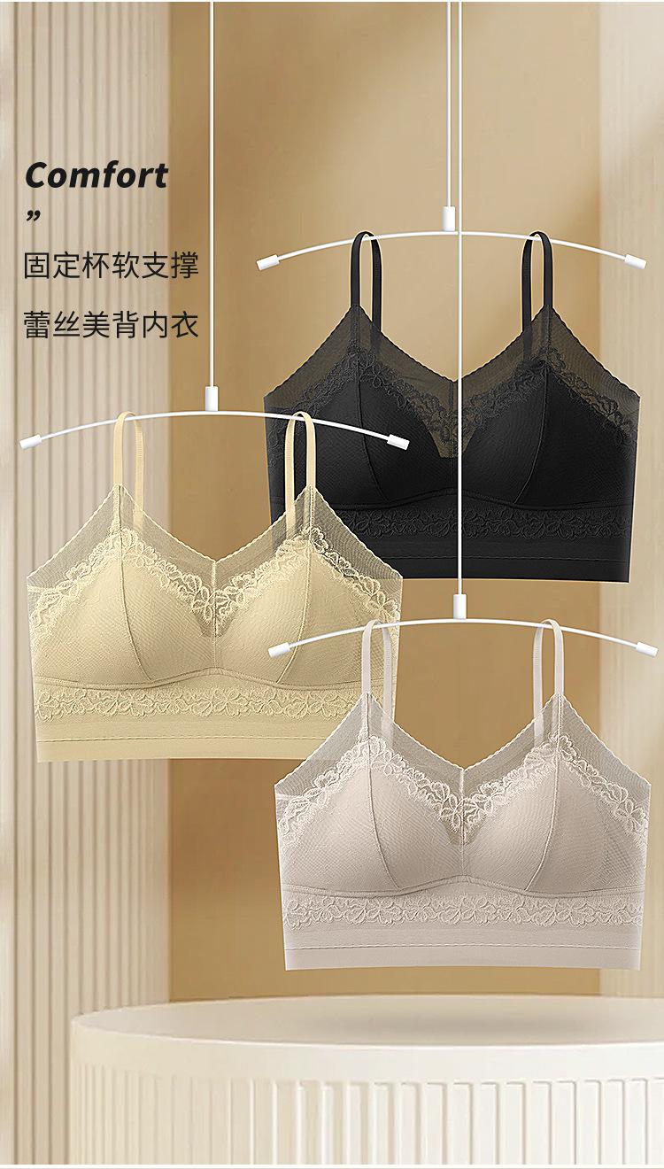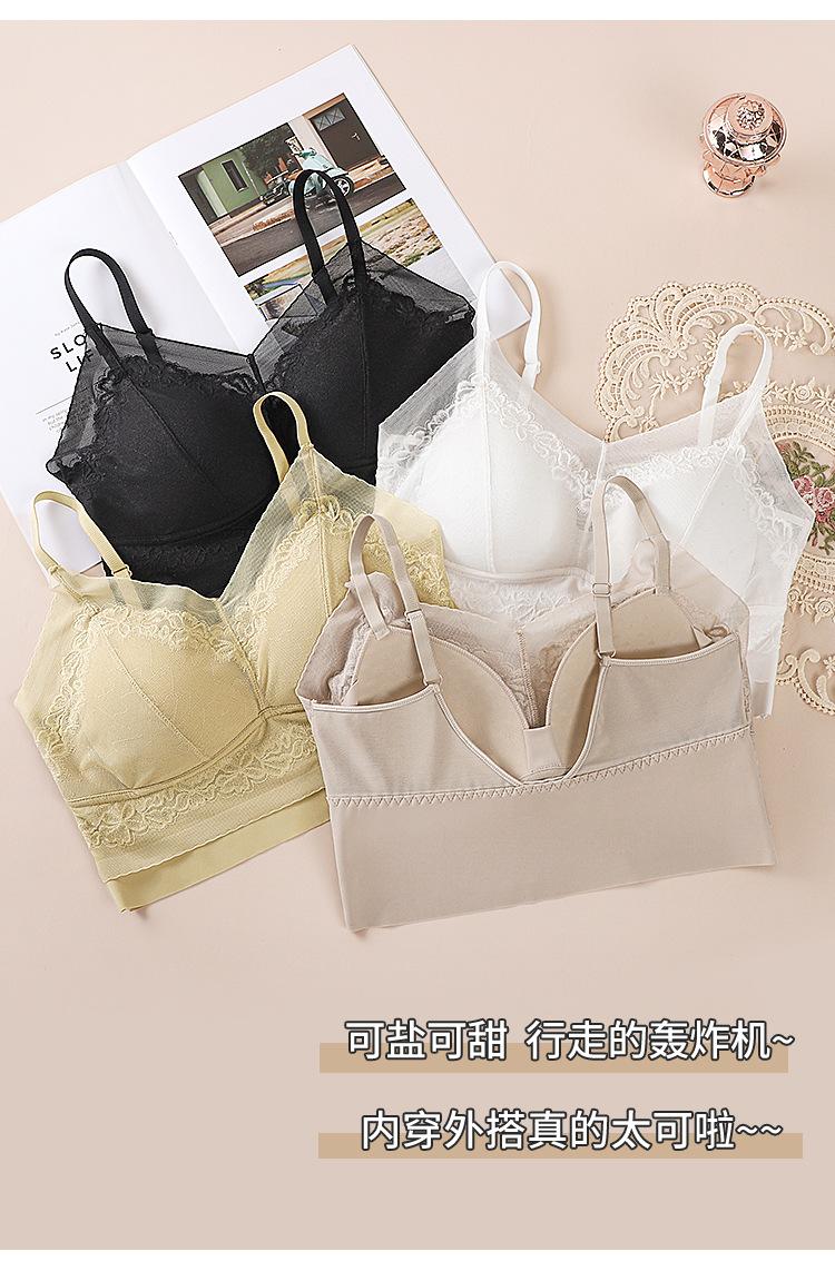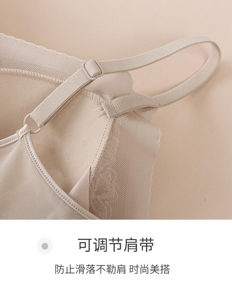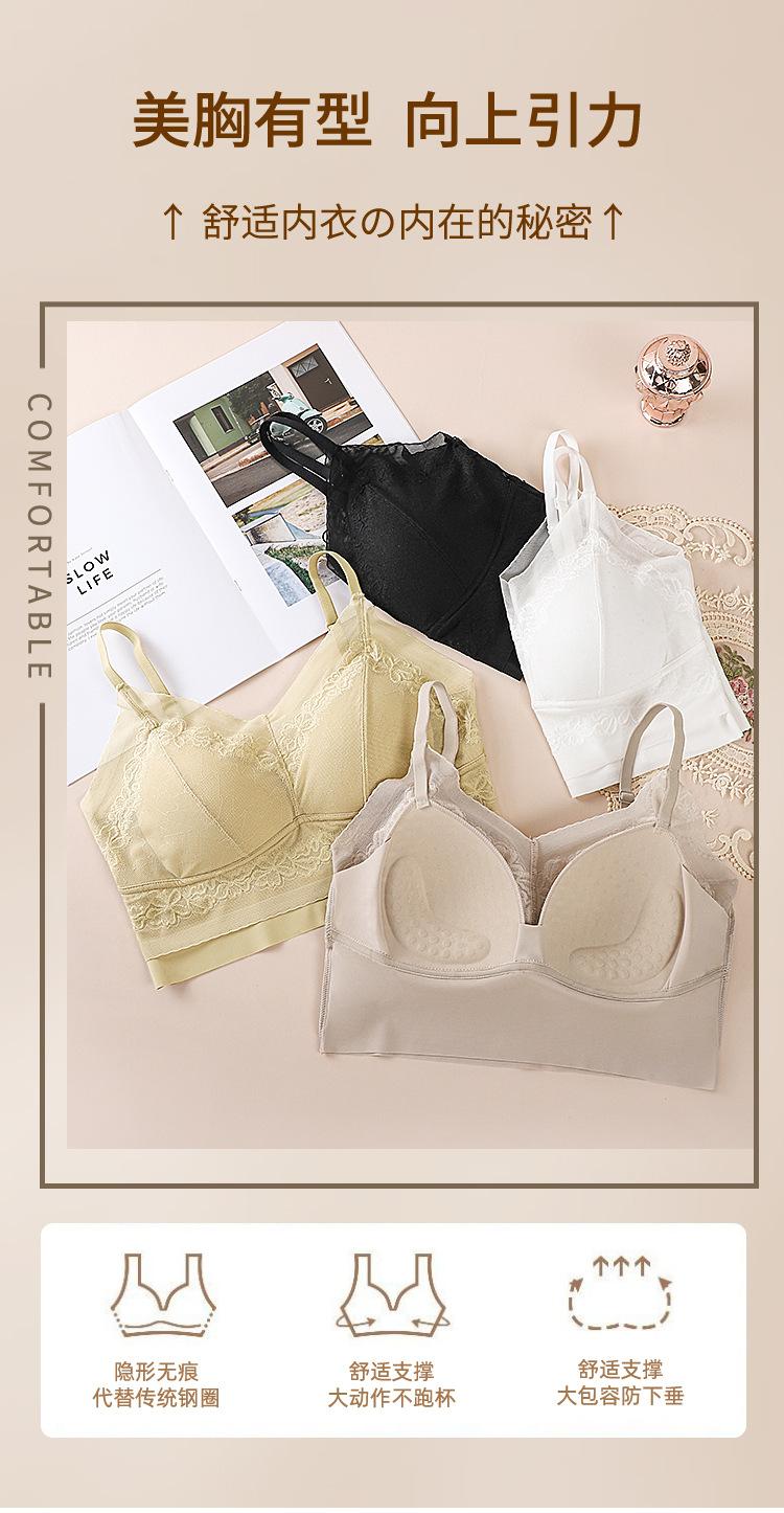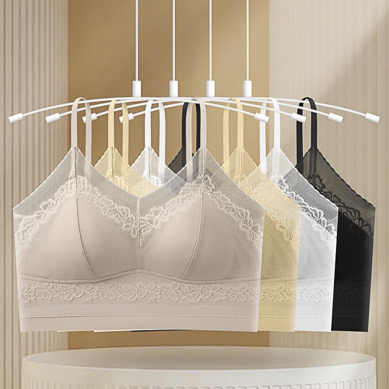 Nuevo estilo encaje francés primavera y verano seda de hielo sin costuras transpirable envoltura de pecho cómodo inalámbrico pecho pequeño push up tirantes ropa interior short