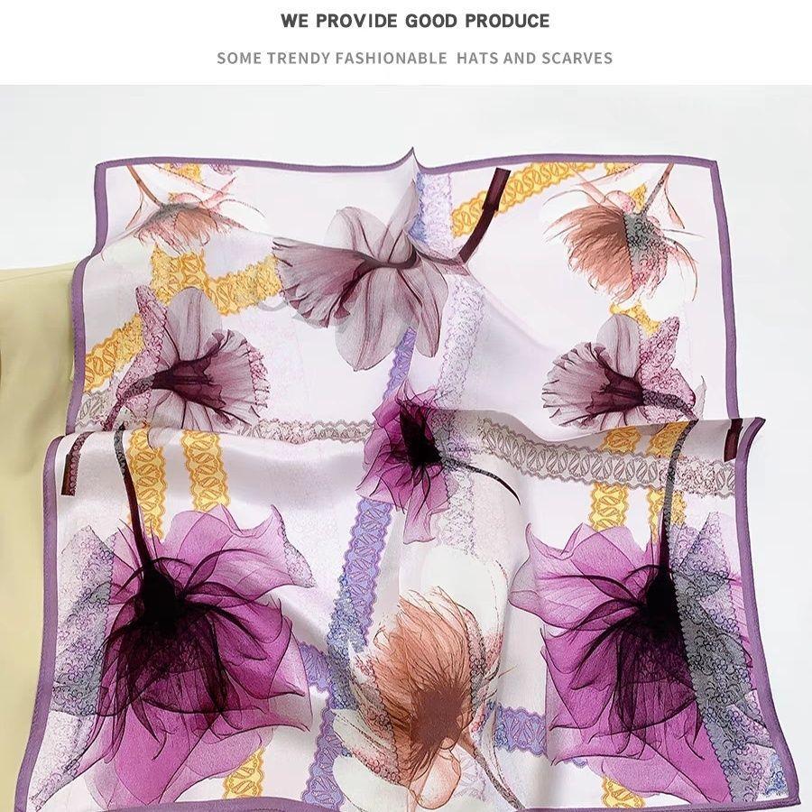 Bufanda de seda morera nueva de color morado, bufanda cuadrada que combina con todo, bufanda decorativa de primavera y otoño, bufanda de moda para madre