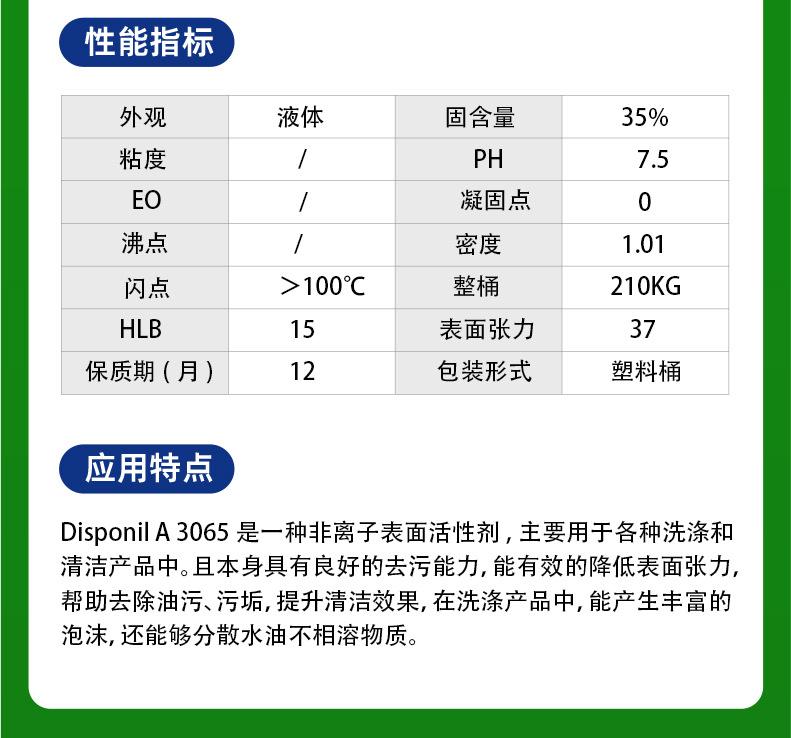 Emulsionante Disponil A 3065 tensioactivo no iónico de éter polioxietilenado de alcohol graso
