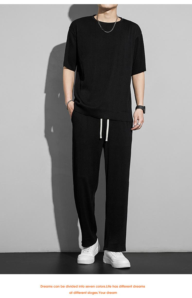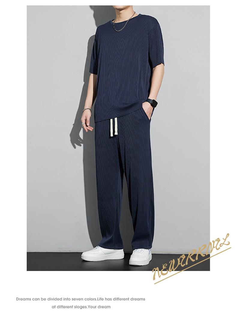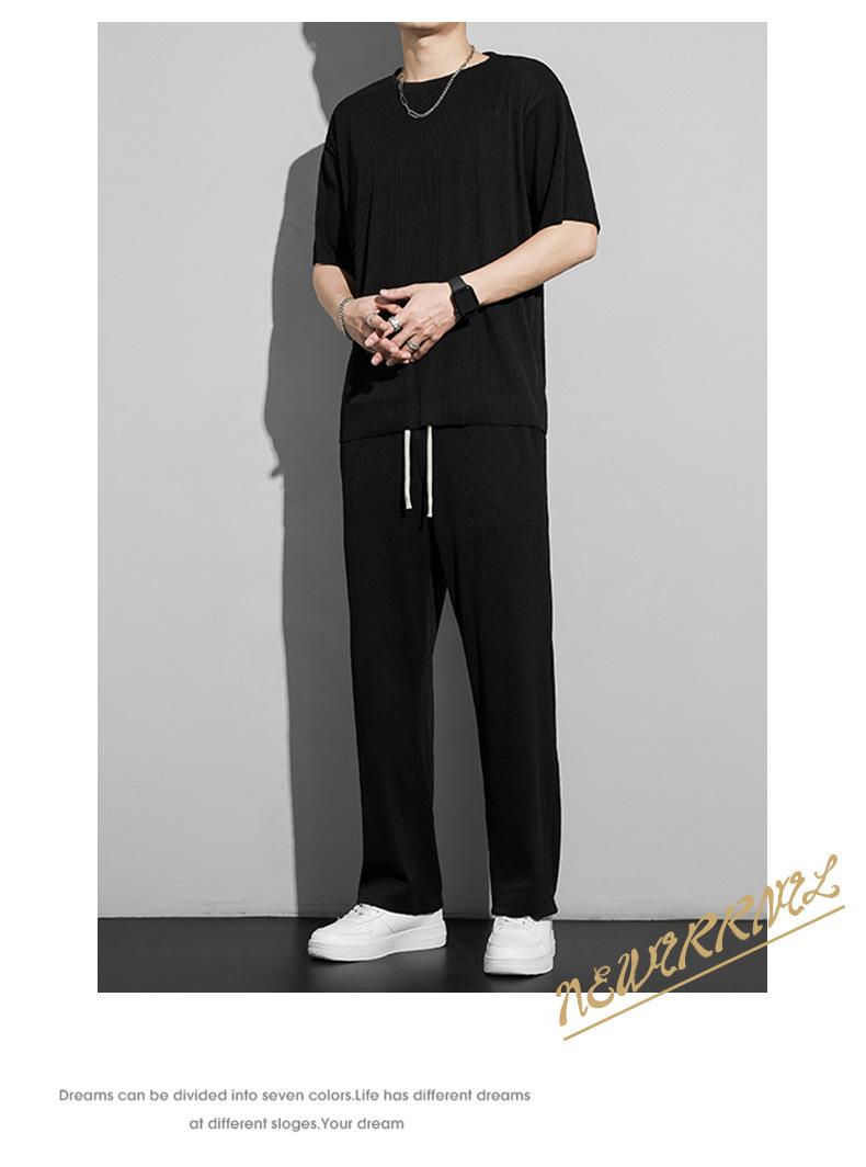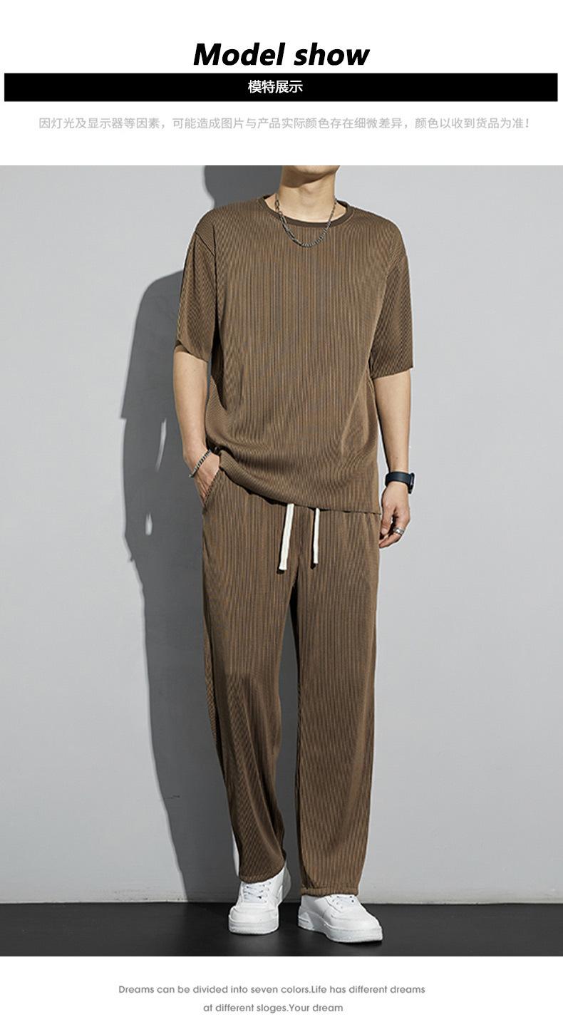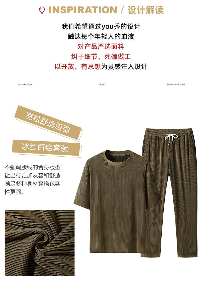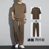 Traje Deportivo Casual para Hombre Verano Nuevo Nariz Suave Seda de Hielo Talla Grande Moda Guapo Conjunto de Dos Piezas a Juego