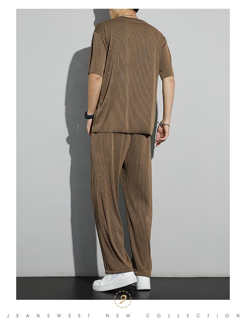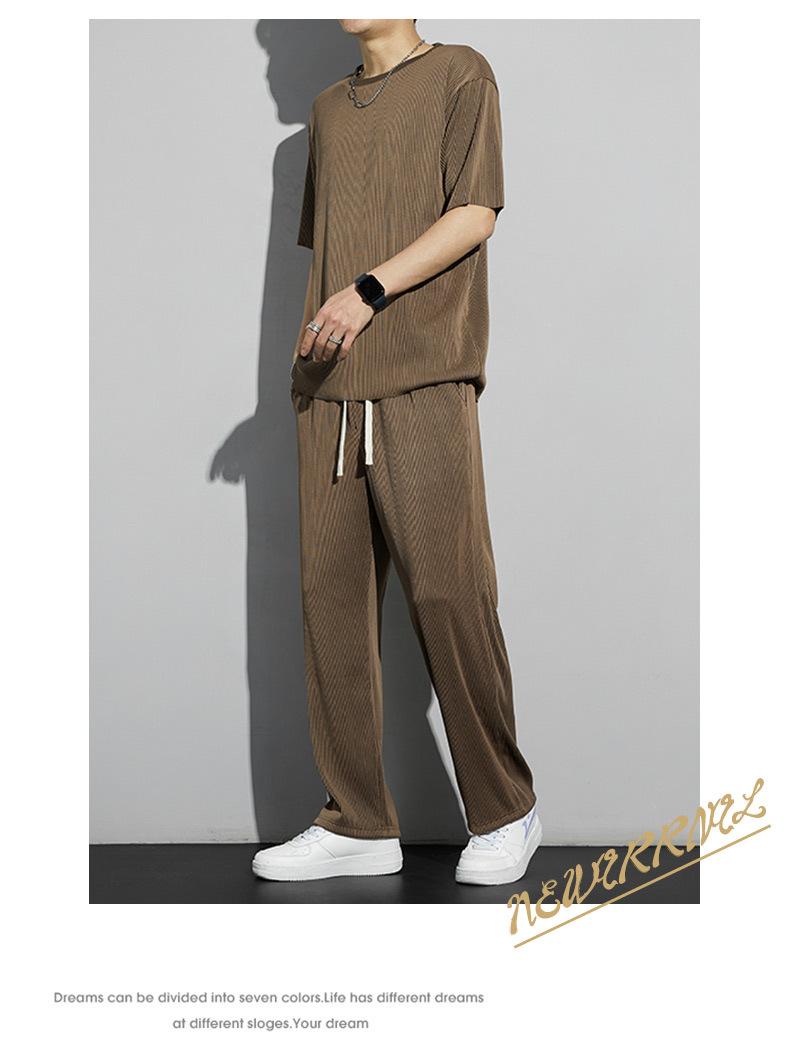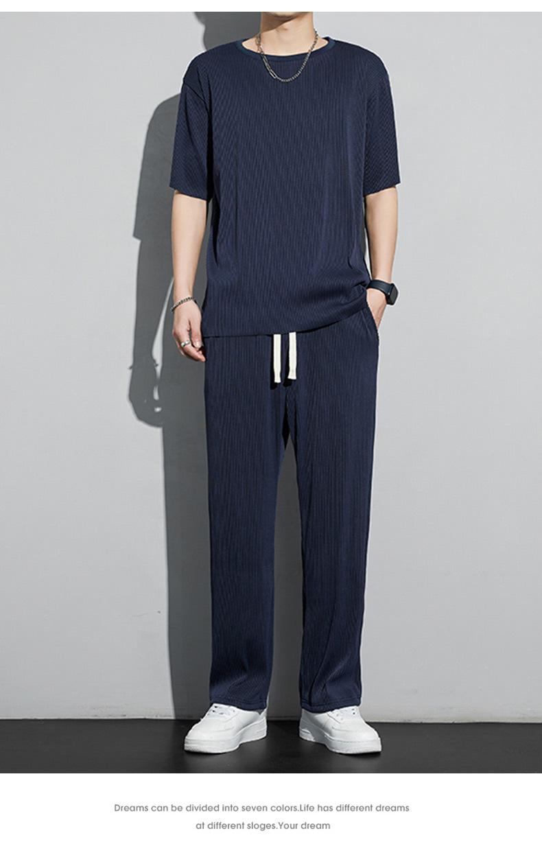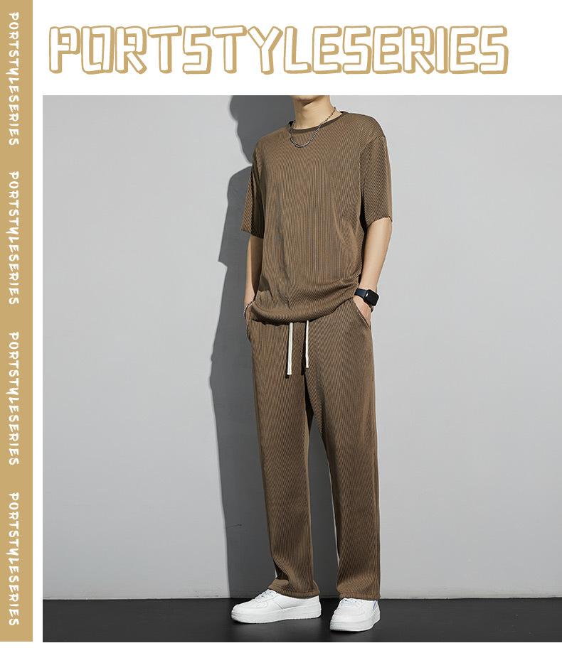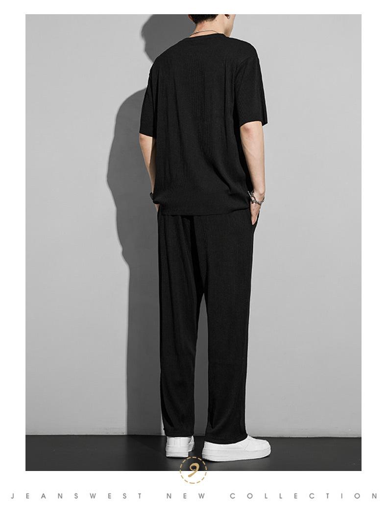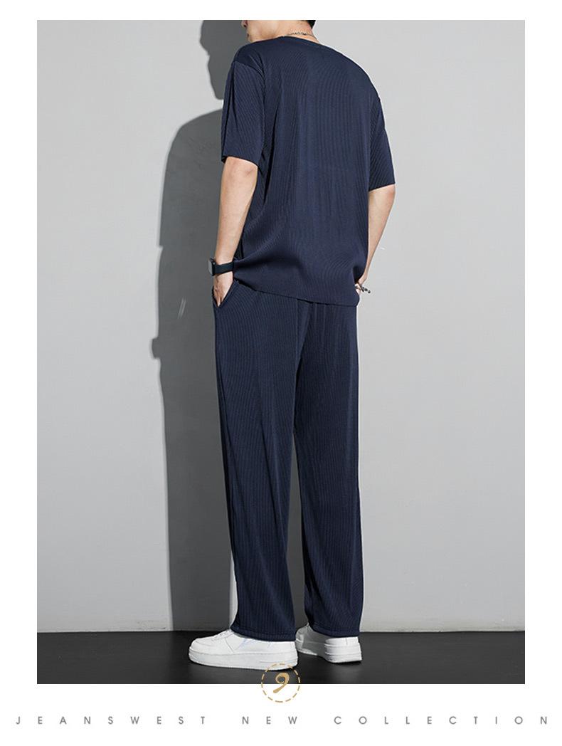 Traje Deportivo Casual para Hombre Verano Nuevo Nariz Suave Seda de Hielo Talla Grande Moda Guapo Conjunto de Dos Piezas a Juego