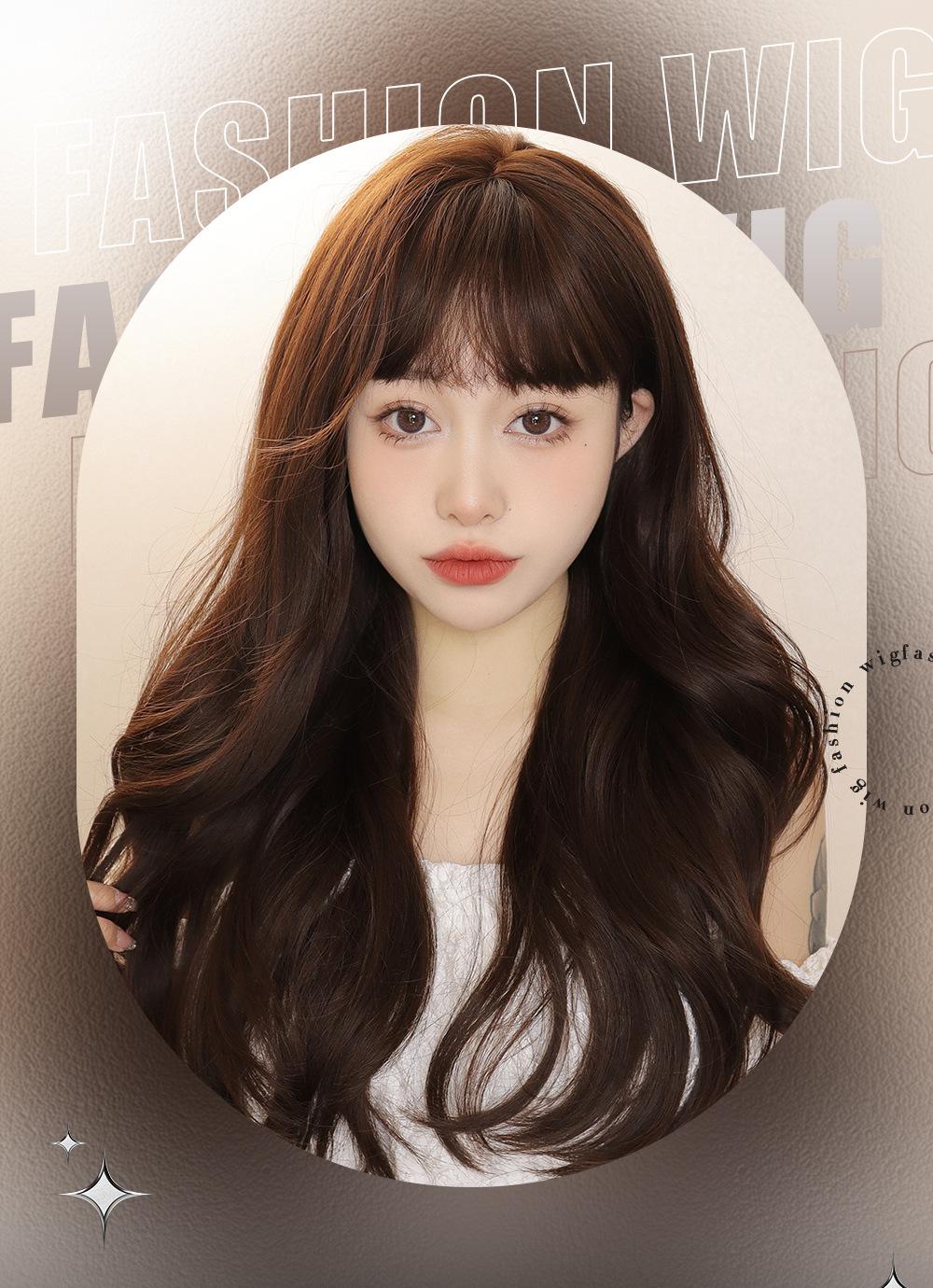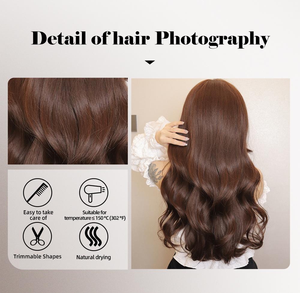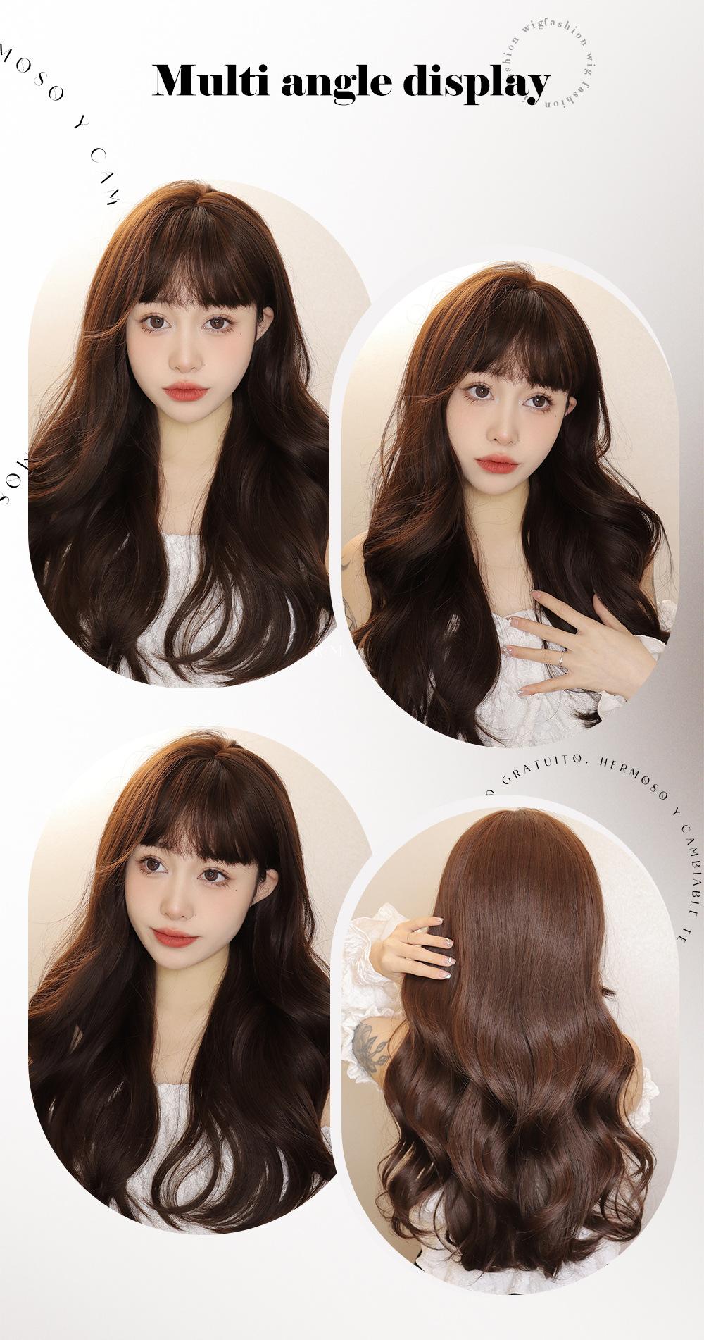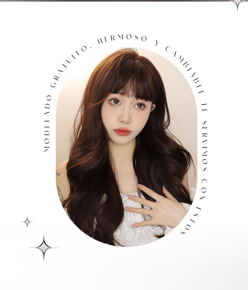 Peluca de mujer de pelo largo y rizado, color blanco y marrón, artificial, con flequillo, ondas grandes, fibra química, para cubrir toda la cabeza.