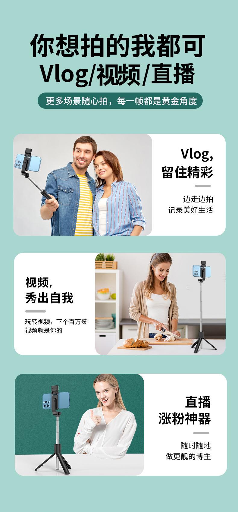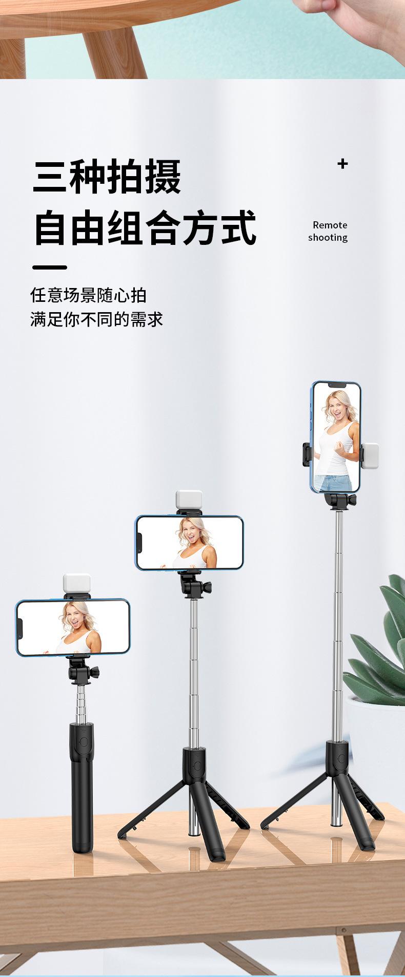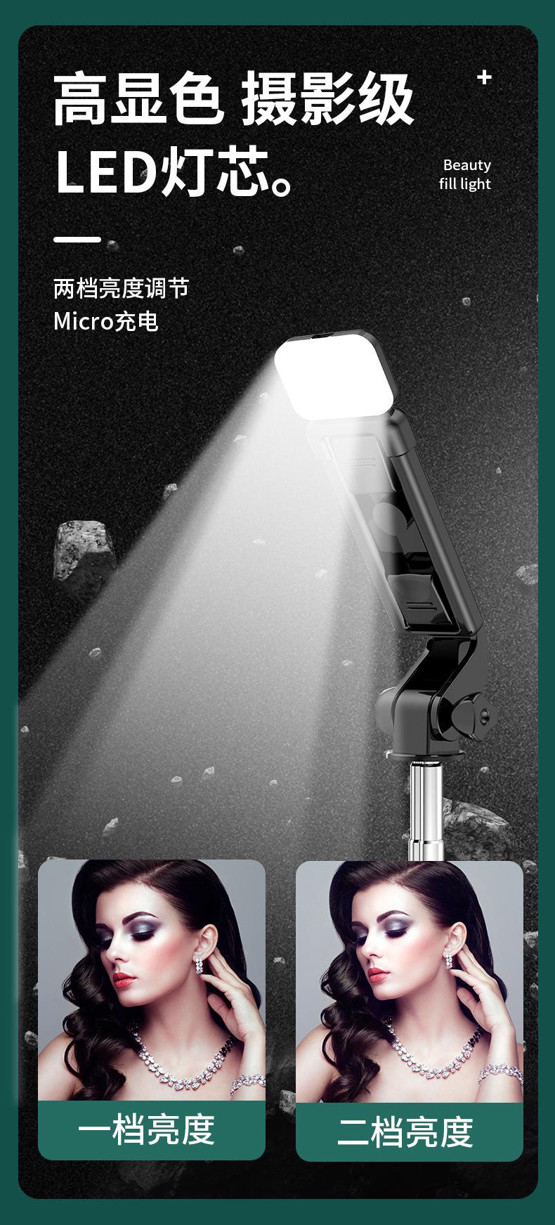 Trípode Bluetooth para teléfono móvil, grabación en vivo, soporte integrado, mini luz de relleno, cámara de mano, artefacto, palo selfie