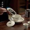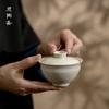 Sitaozhai Color Sólido Planta Gris Esmalte Tazón con Tapa Tazón de Té Grande para Hogar Juego de Té Kung Fu de Cerámica Hecho a Mano Chino Taza de Té