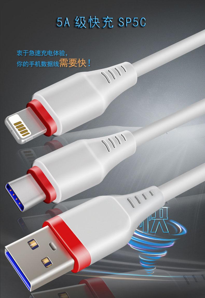 Cable para teléfono móvil de grado 5A ultrarrápido, cable de datos de carga, adecuado para Android, Apple, Huawei, 66 W, Tipo-C macho, carga para coche