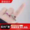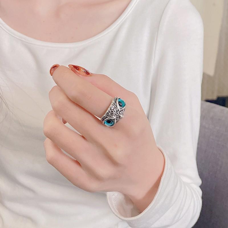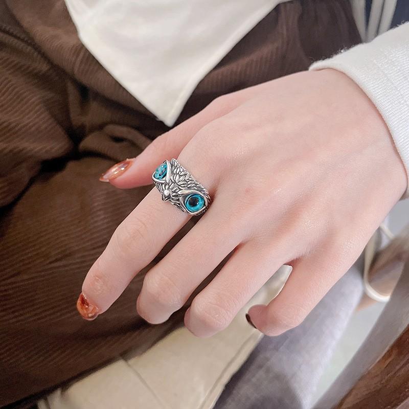 Retro industria pesada lujo ligero búho ojo azul estilo punk tridimensional moderno hip hop anillo abierto personalidad femenina Alto sentido