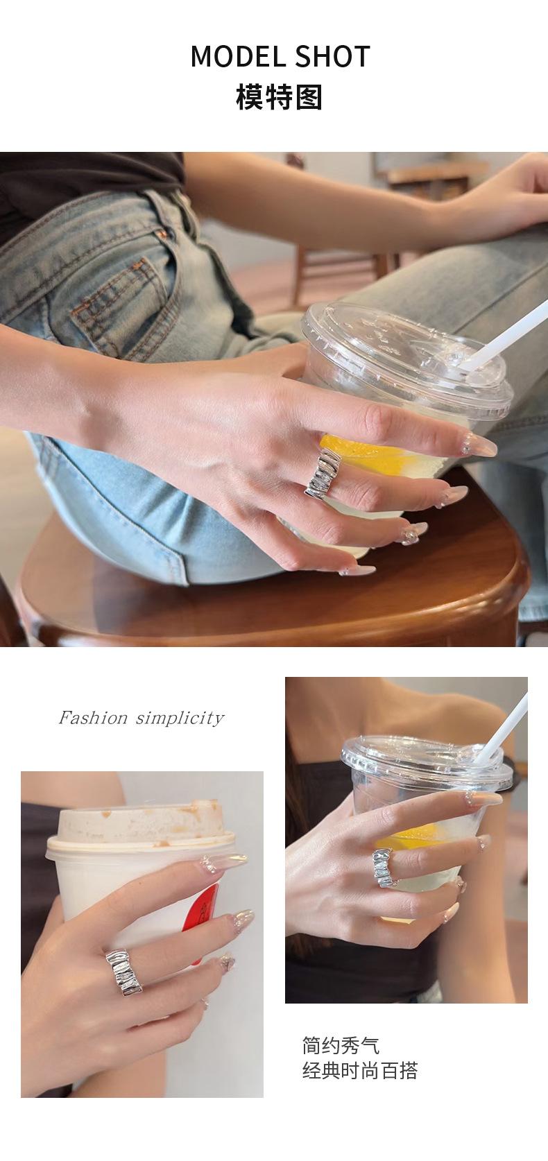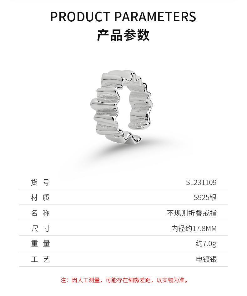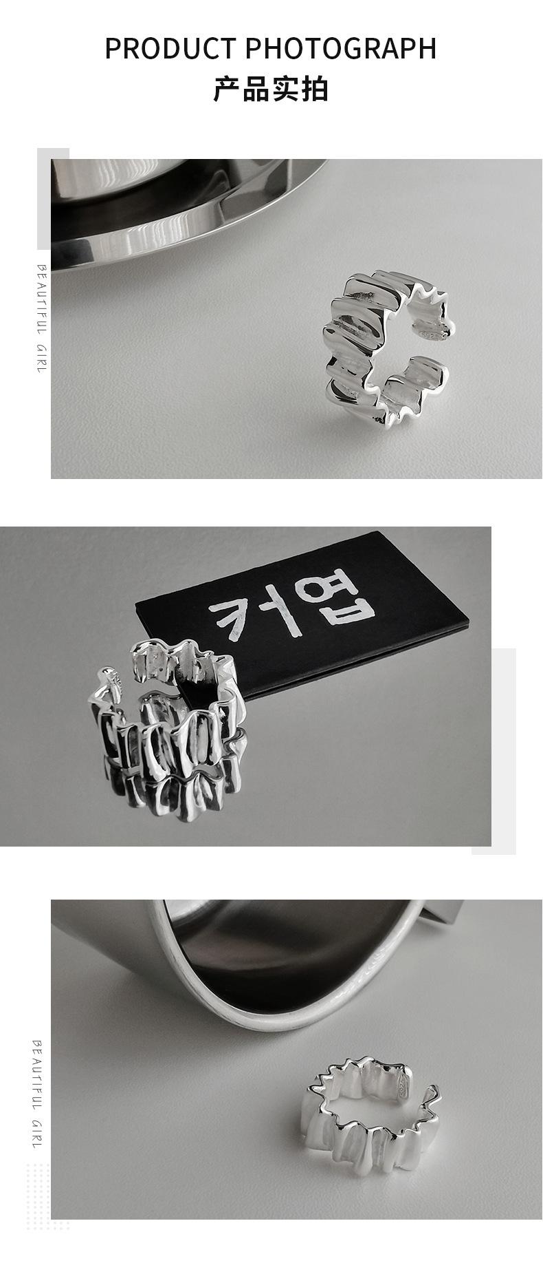 Anillo de plata S925 con patrón plisado irregular de plata esterlina, anillo abierto con diseño de nicho femenino y viento frío.