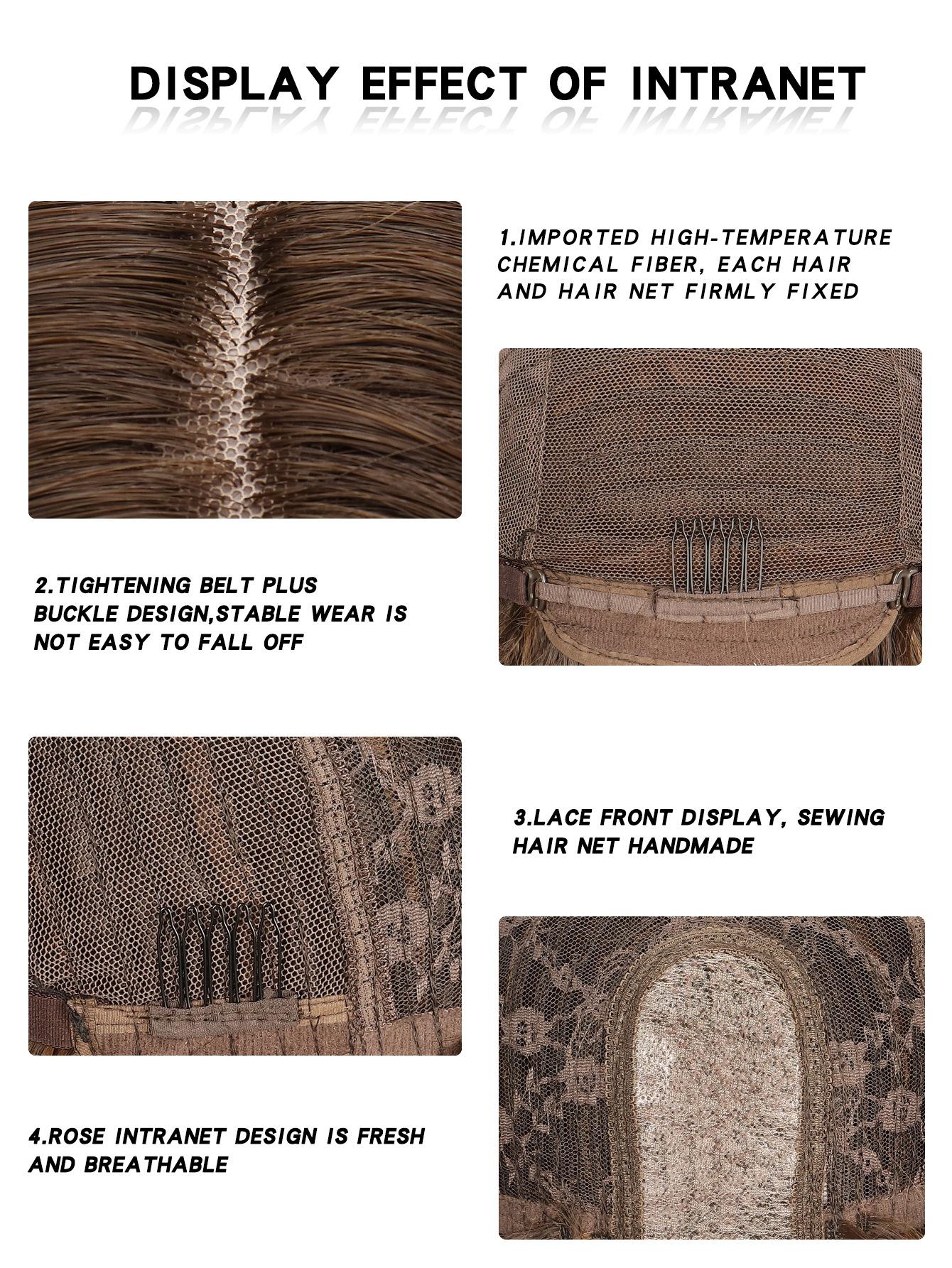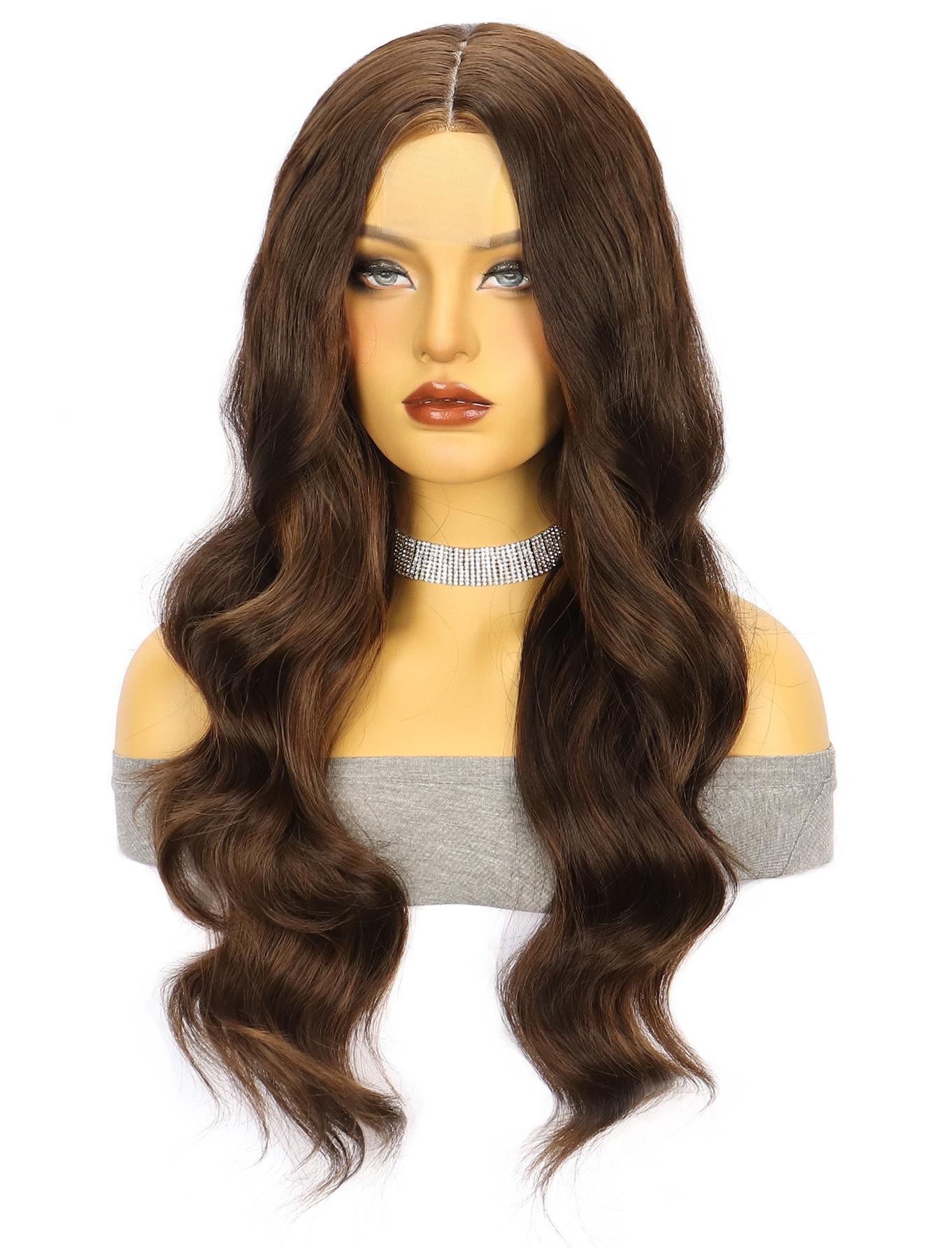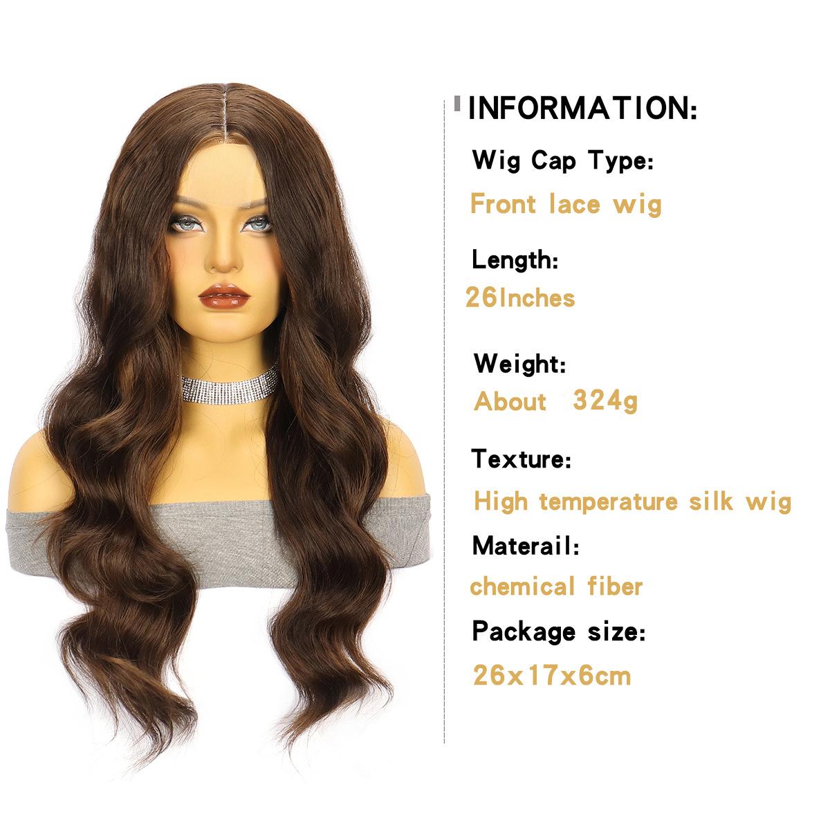 ![]() Peluca de encaje con reflejos marrones, cabello largo y rizado con raya en medio, tocado de fibra química para mujer, disponible para entrega