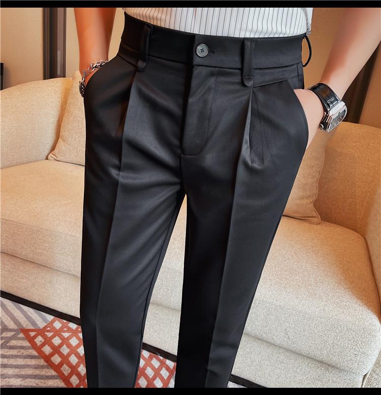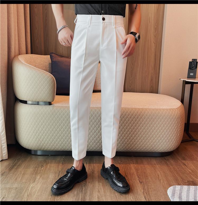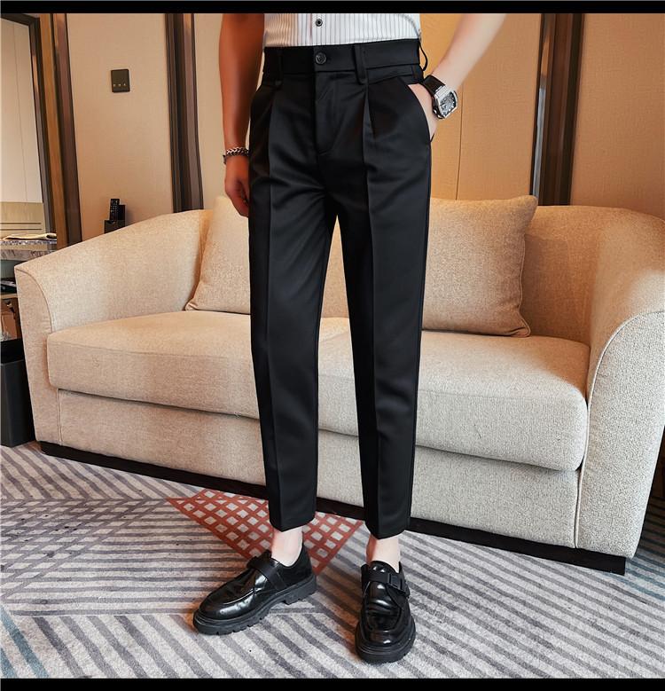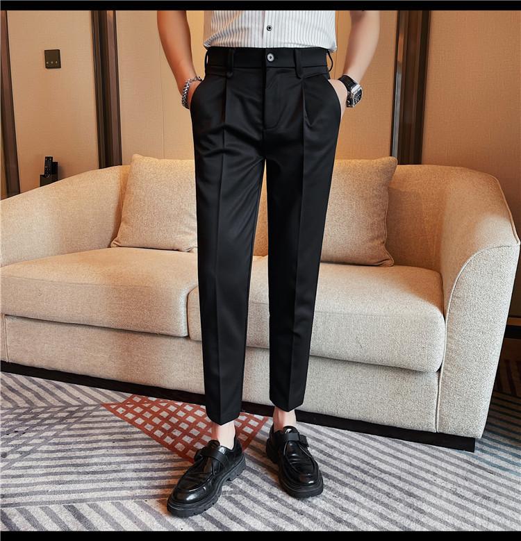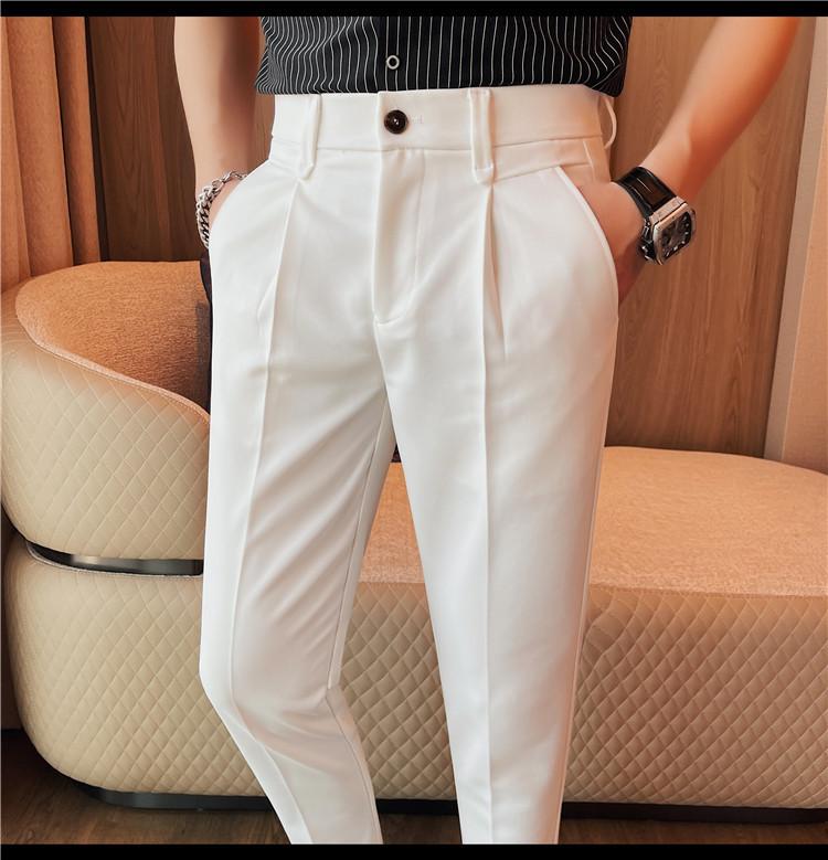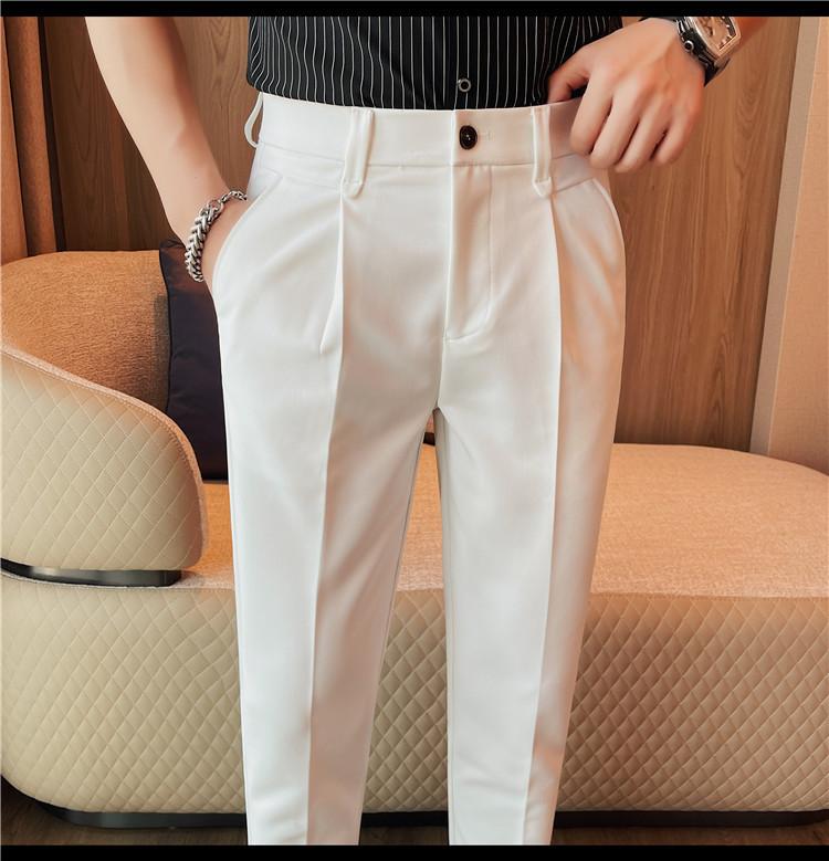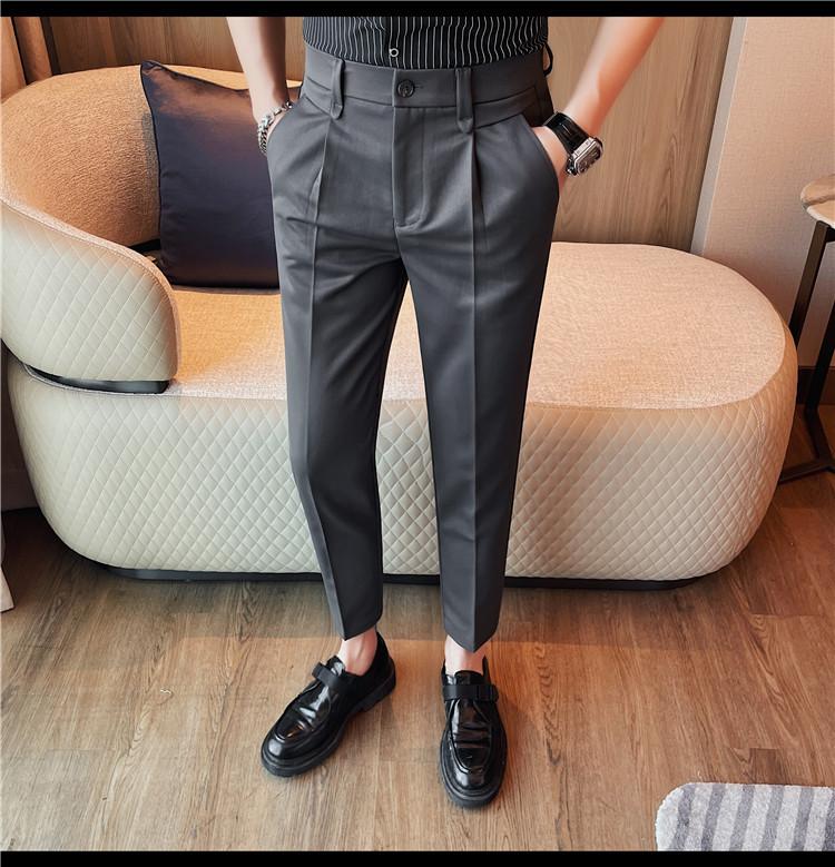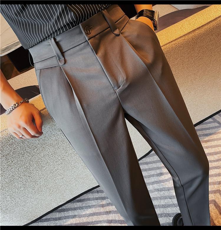 Pantalones cortos de traje casual para hombre, pantalones casuales de negocios de color sólido, pantalones casuales de lujo ligeros de calidad, pantalones casuales con cintura elástica en la espalda para hombre