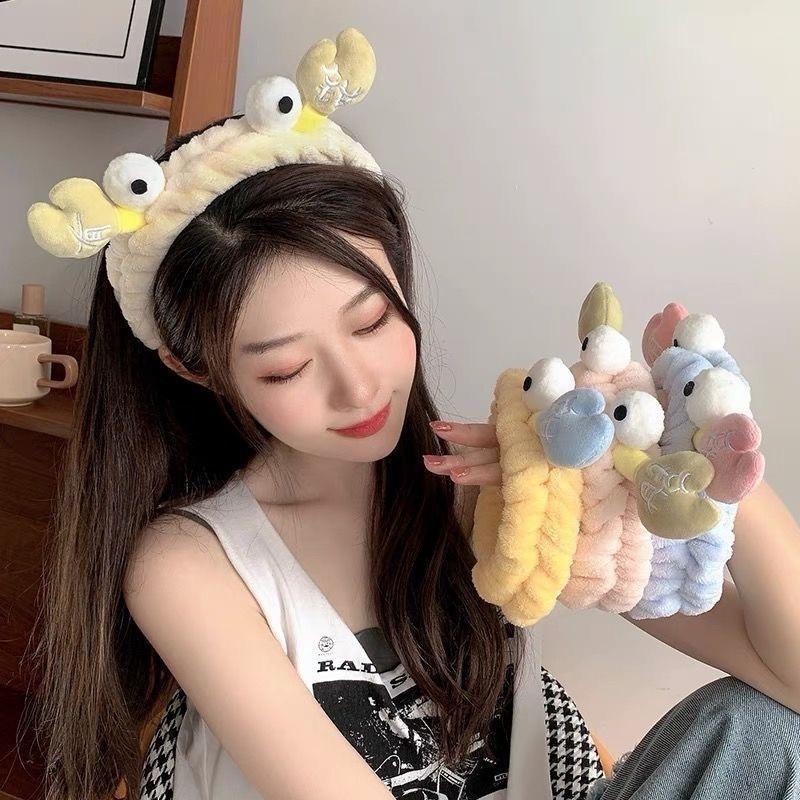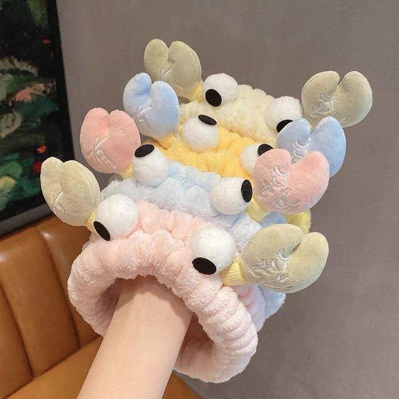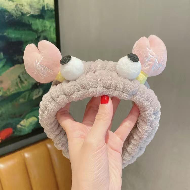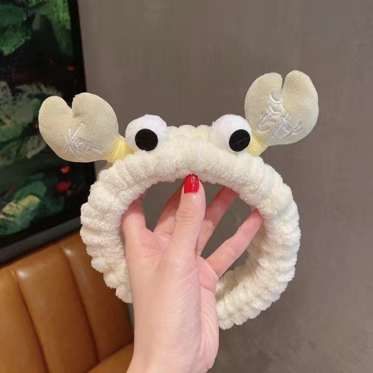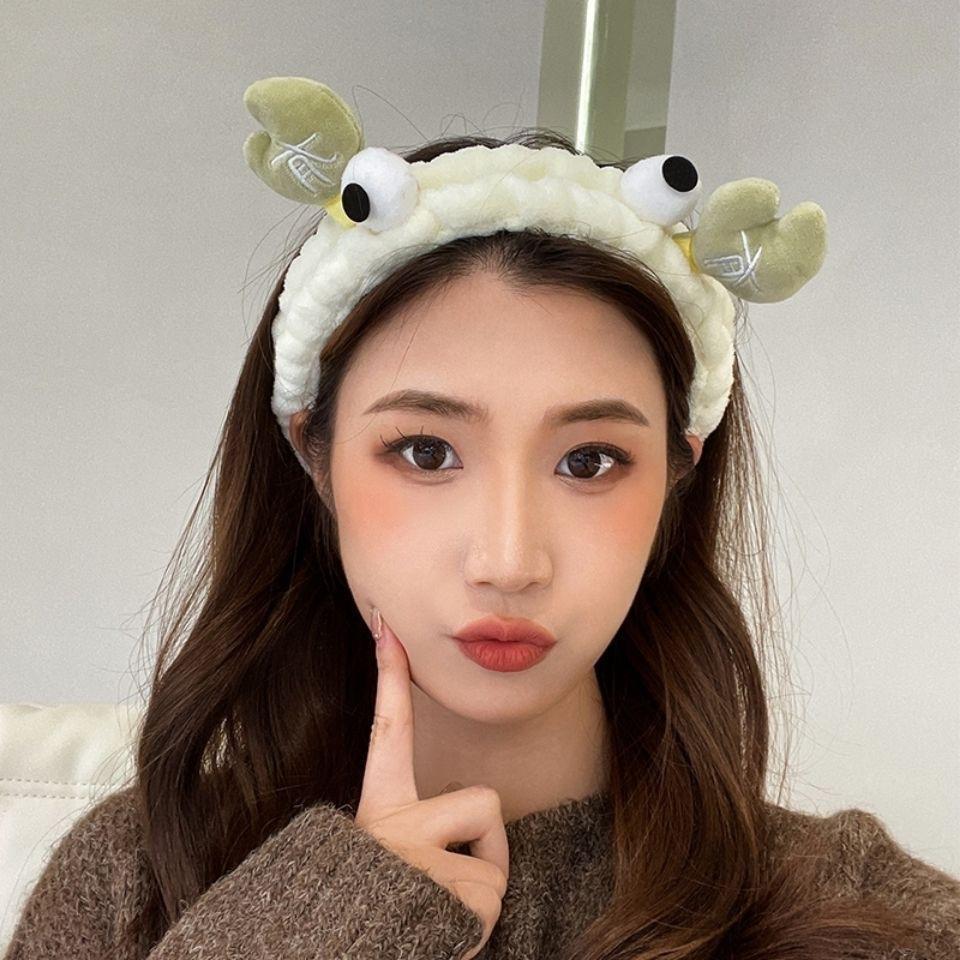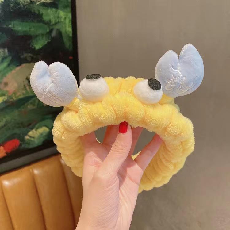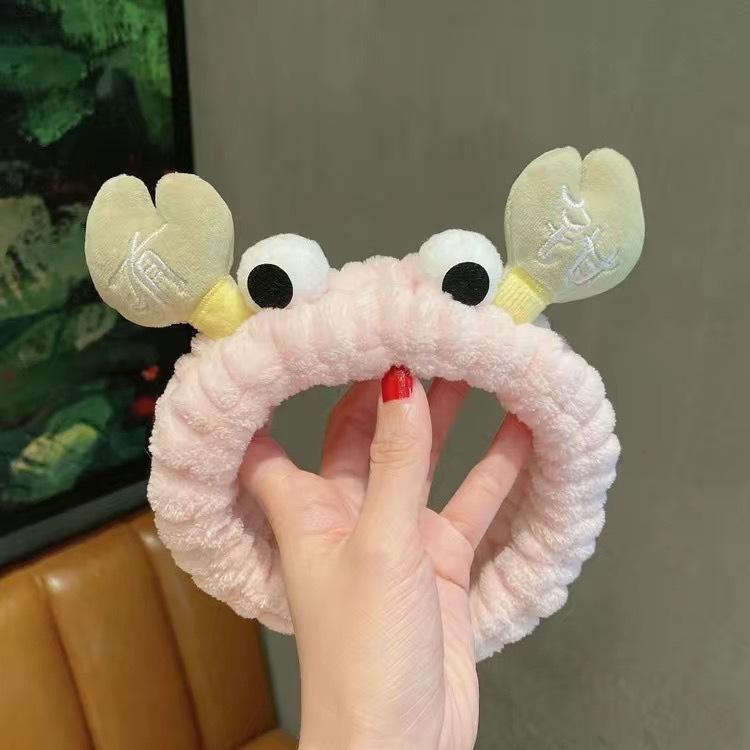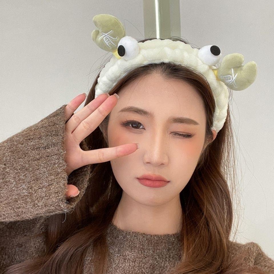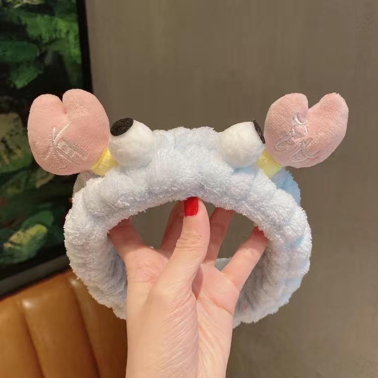 Nueva diadema de cangrejo de dibujos animados de estilo coreano, banda para el cabello para lavado facial de otoño e invierno, banda para el cabello con mascarilla de maquillaje, diadema de felpa