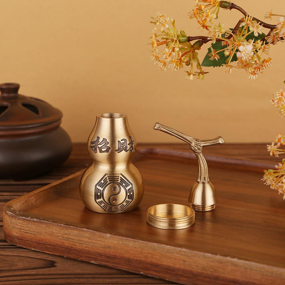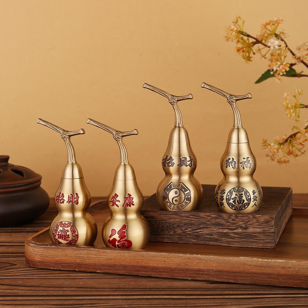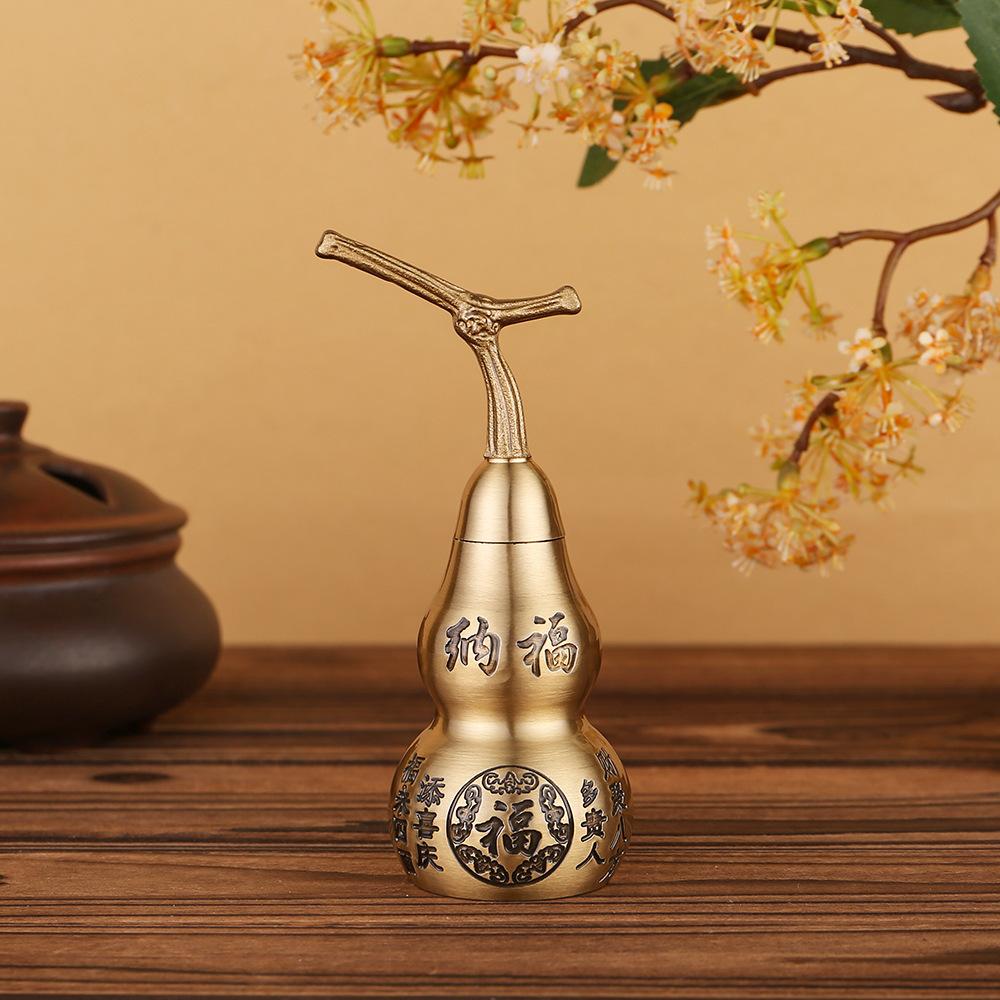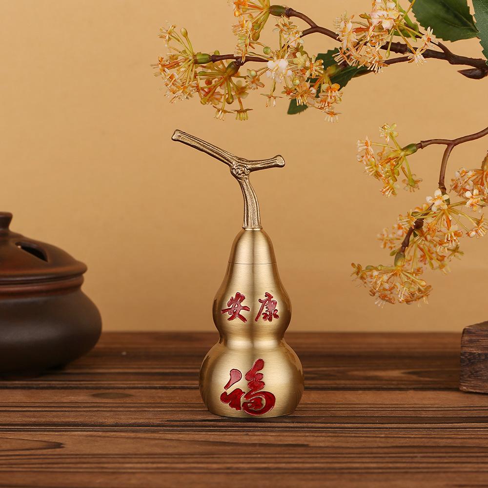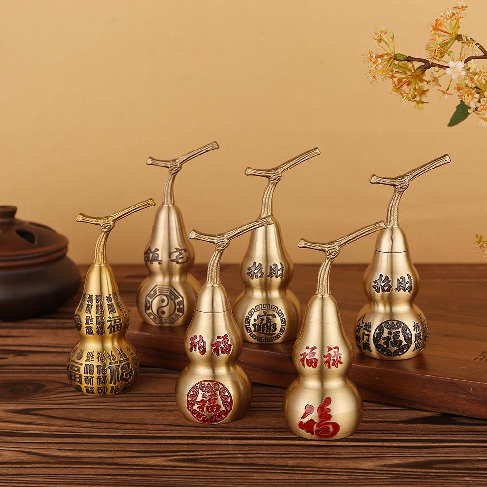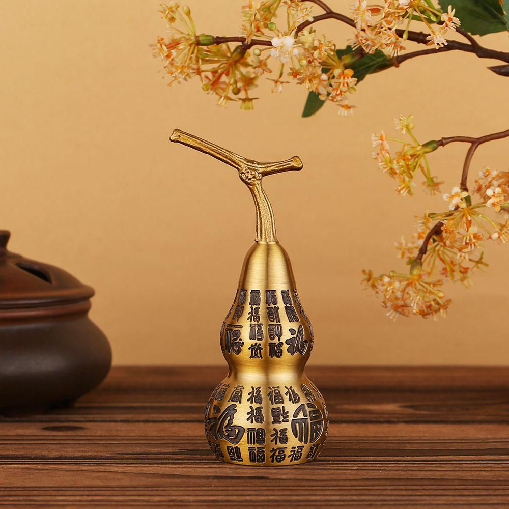 Calabaza de pareado Baifu tallada en latón puro de 10 cm, decoración del hogar, artesanía de la suerte Ankang Fu Lu, regalo