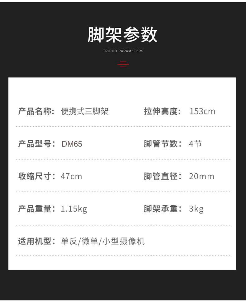 Trípode para fotografía DM65, trípode portátil para cámara, trípode de suelo para uso en vivo
