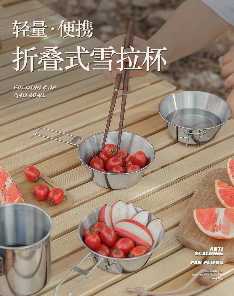 Olla para acampar al aire libre, tazón plegable, vajilla portátil, taza de café de acero inoxidable para acampar, tazón de fideos instantáneos, tazón de nieve para picnic