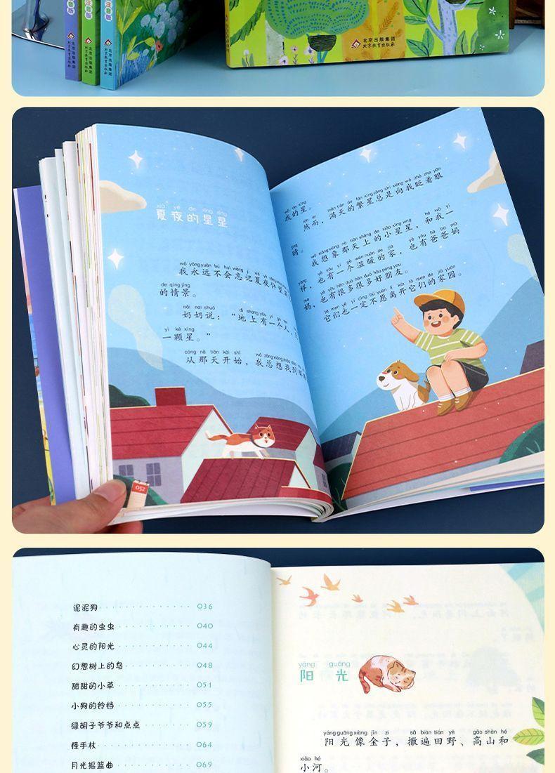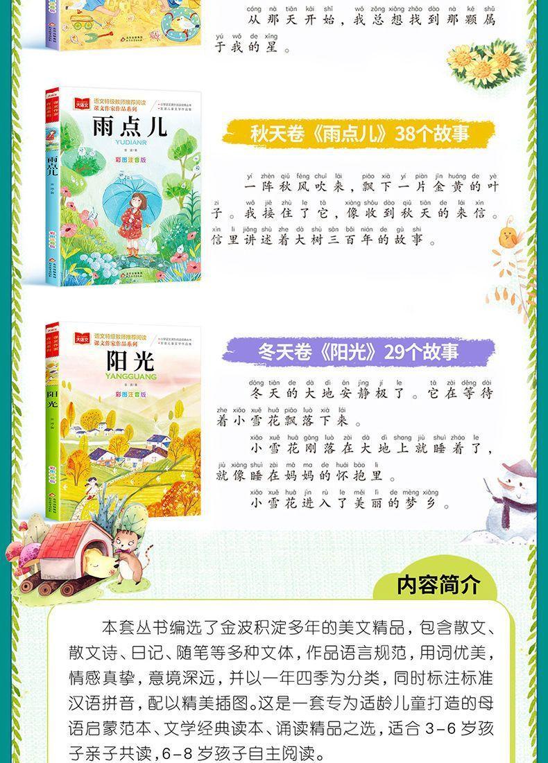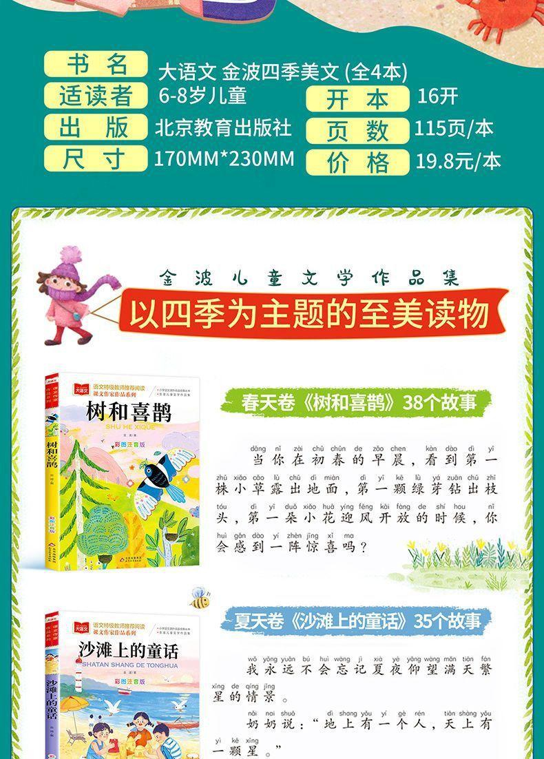 Gotas de lluvia en la playa, cuento de hadas, sol, árbol y urraca, ola dorada, primavera, verano, otoño e invierno, cuatro estaciones, versión fonética americana, conjunto completo