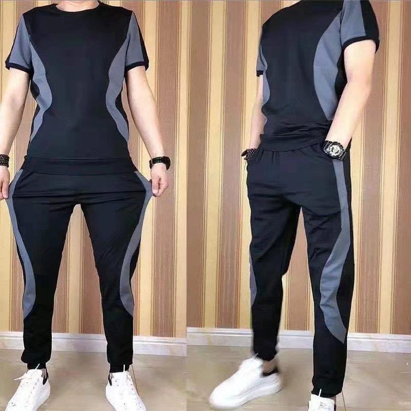Traje de manga corta de seda de hielo para hombre, nuevo traje deportivo de ocio de verano para hombre, traje de fitness para correr, camiseta, pantalones, traje de dos piezas.