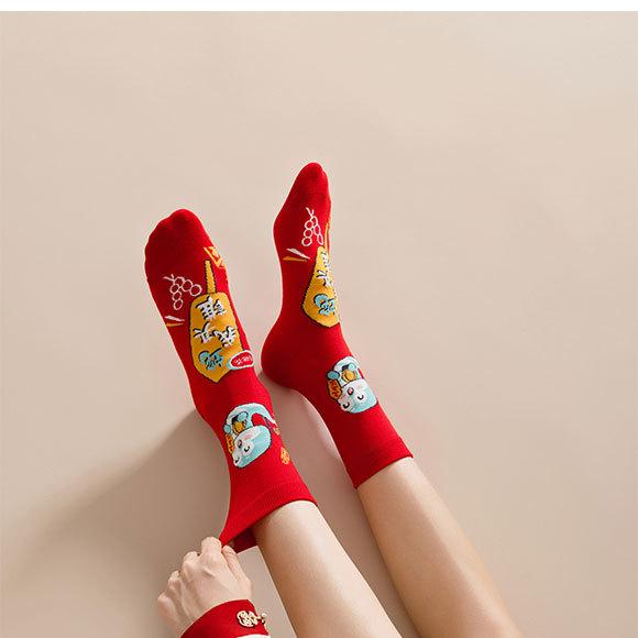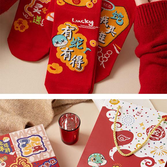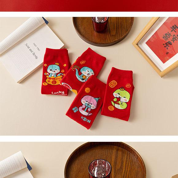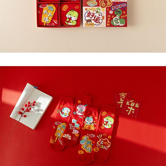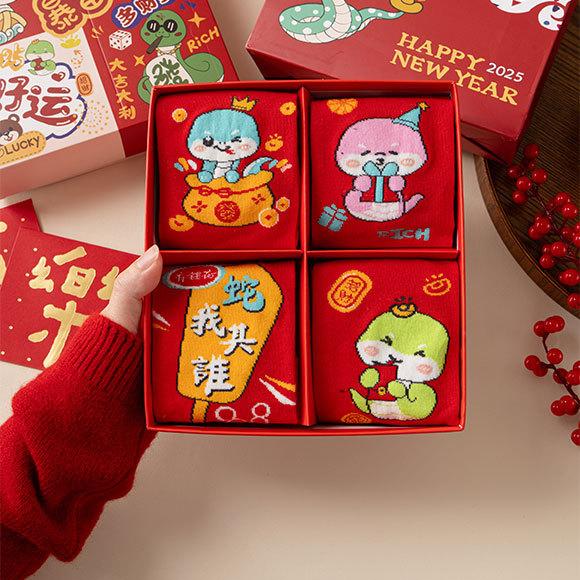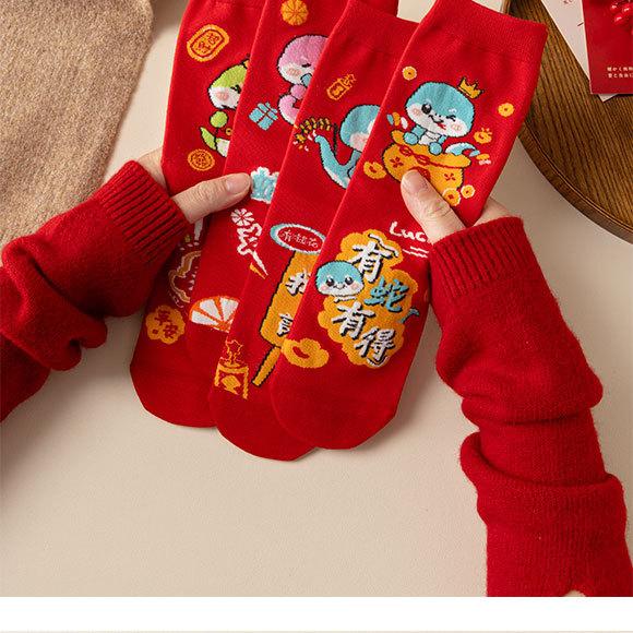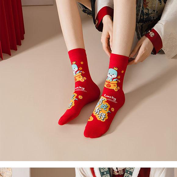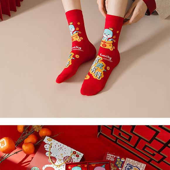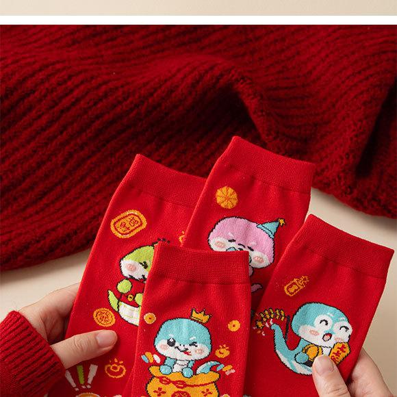 Calcetines rojos del Año de la Serpiente, calcetines de algodón para hombre, cajas de regalo para hombre, regalos de Año Nuevo, calcetines de tubo medio con dibujos animados para boda para mujer.