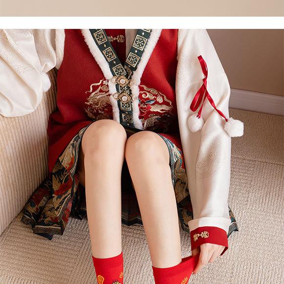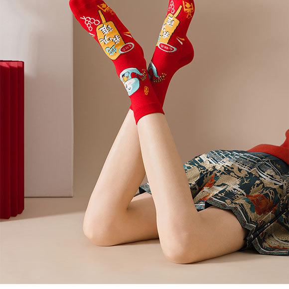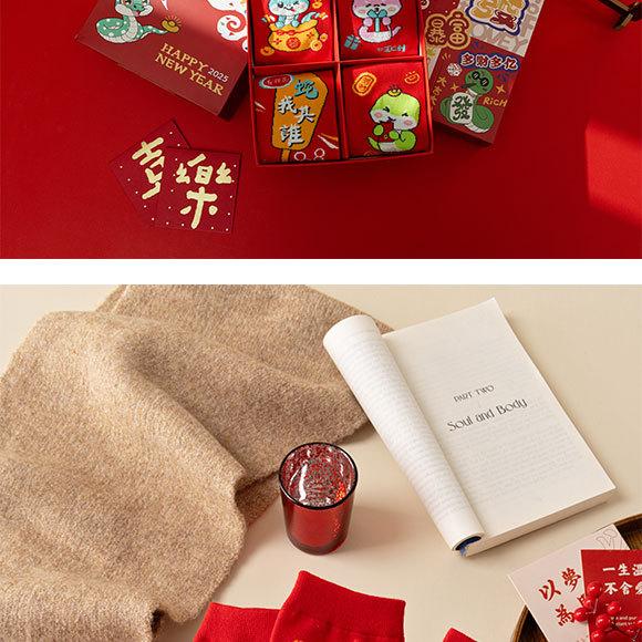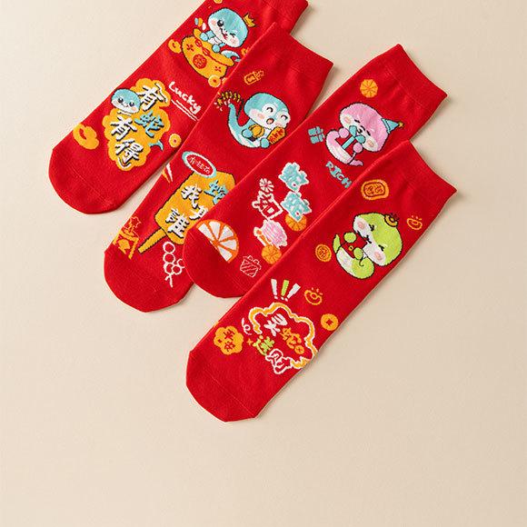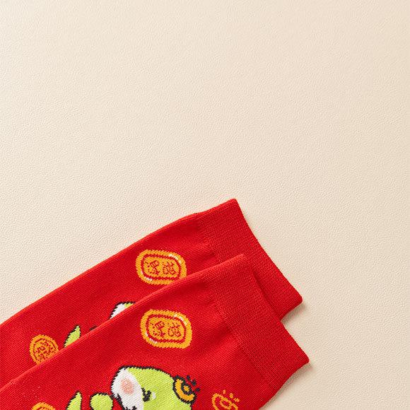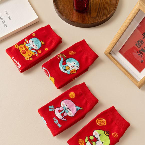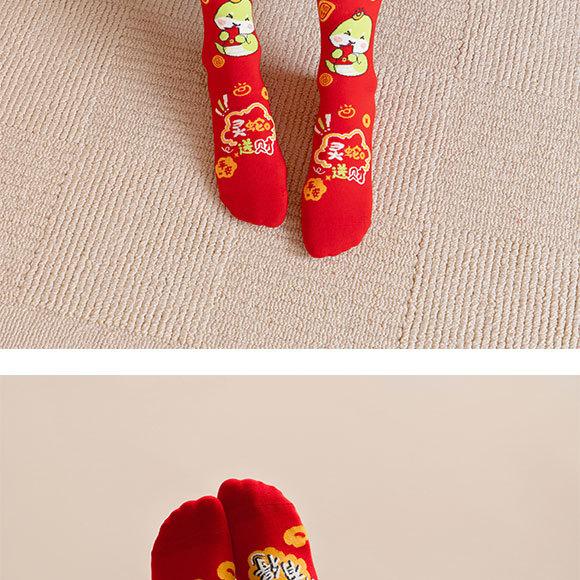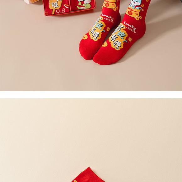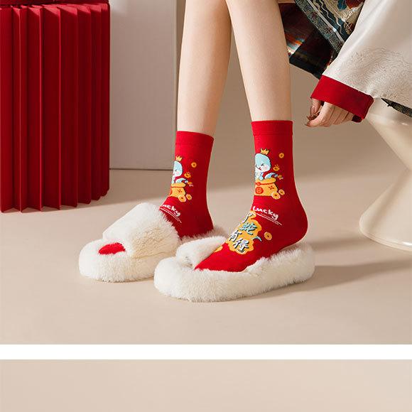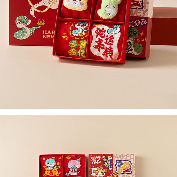Calcetines rojos del Año de la Serpiente, calcetines de algodón para hombre, cajas de regalo para hombre, regalos de Año Nuevo, calcetines de tubo medio con dibujos animados para boda para mujer.