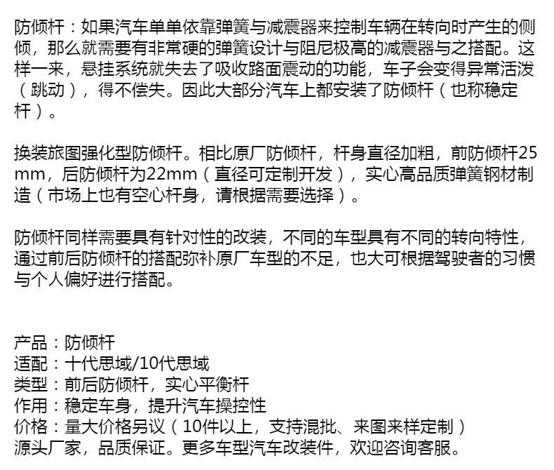 Front anti-roll bar (including rubber sleeve and metal buckle), Rear anti-roll bar (including rubber sleeve an...