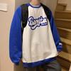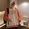 Sudadera holgada de cuello redondo y manga raglán con costuras en contraste para hombre, otoño 2023, WY39