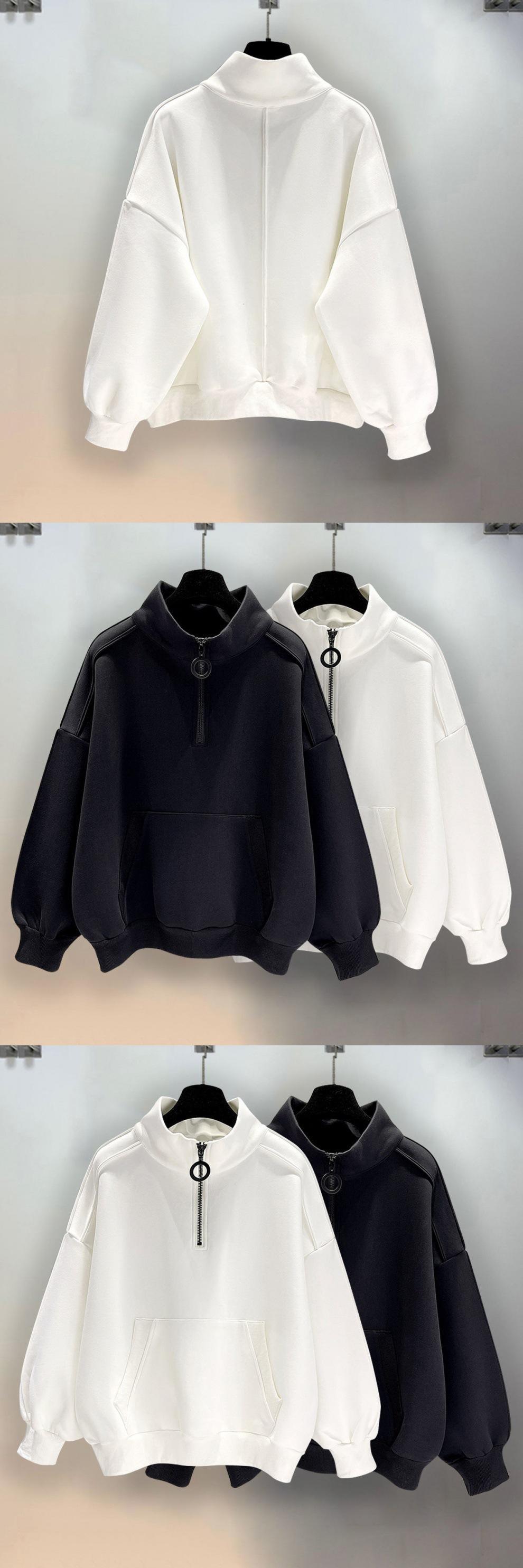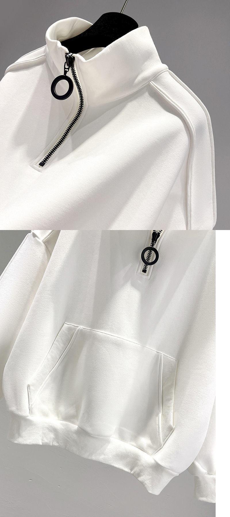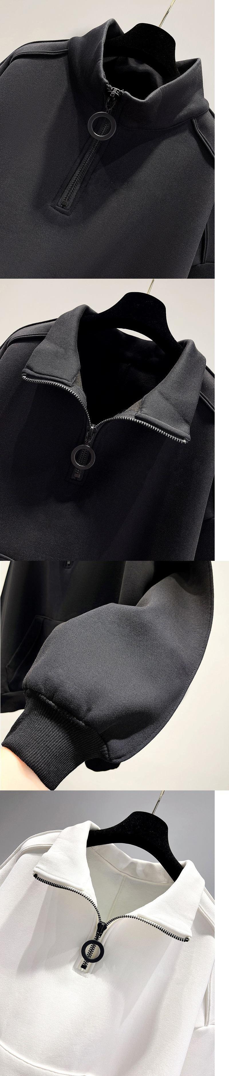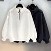 Suéter negro con media cremallera para hombre primavera y otoño cuello alto abrigo retro americano estilo moderno freído callejero top tipo jersey de otoño e invierno para hombre