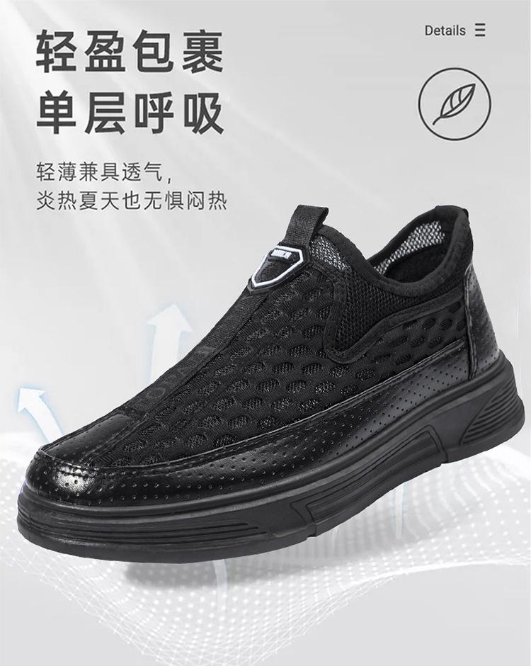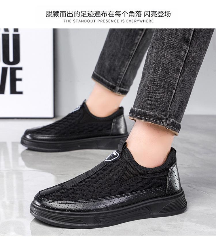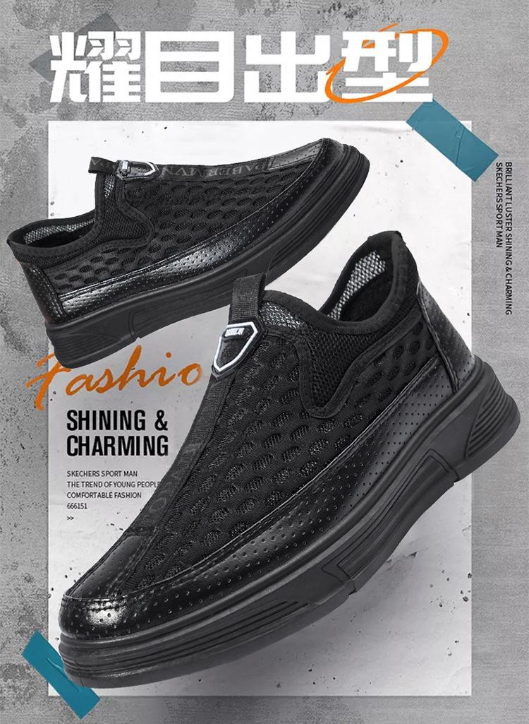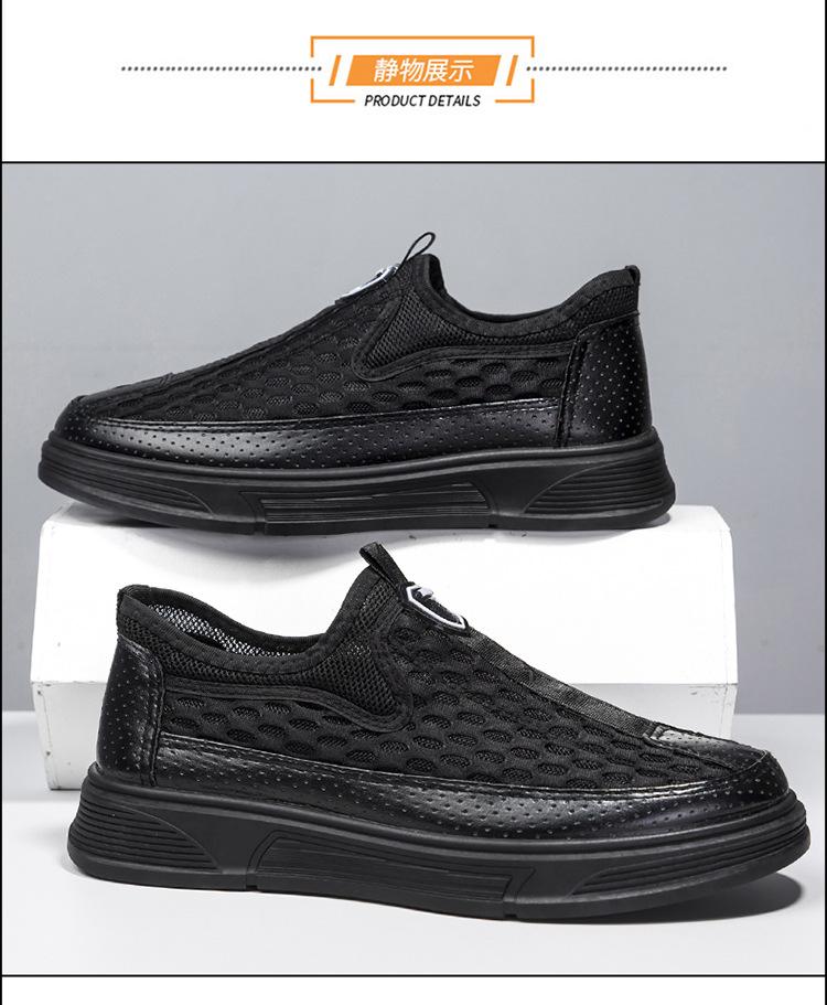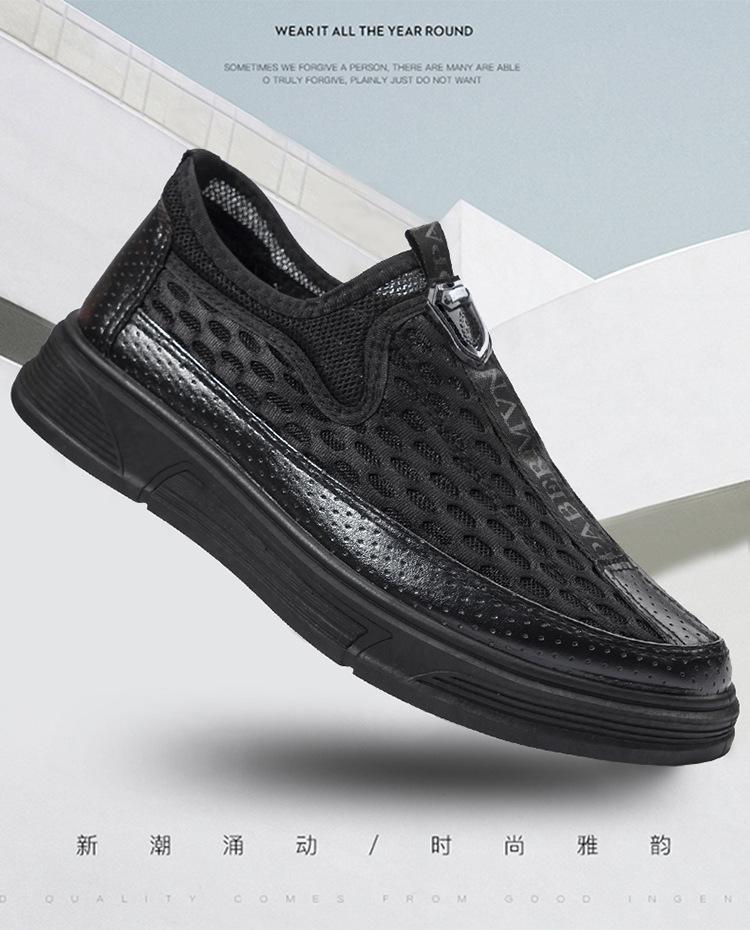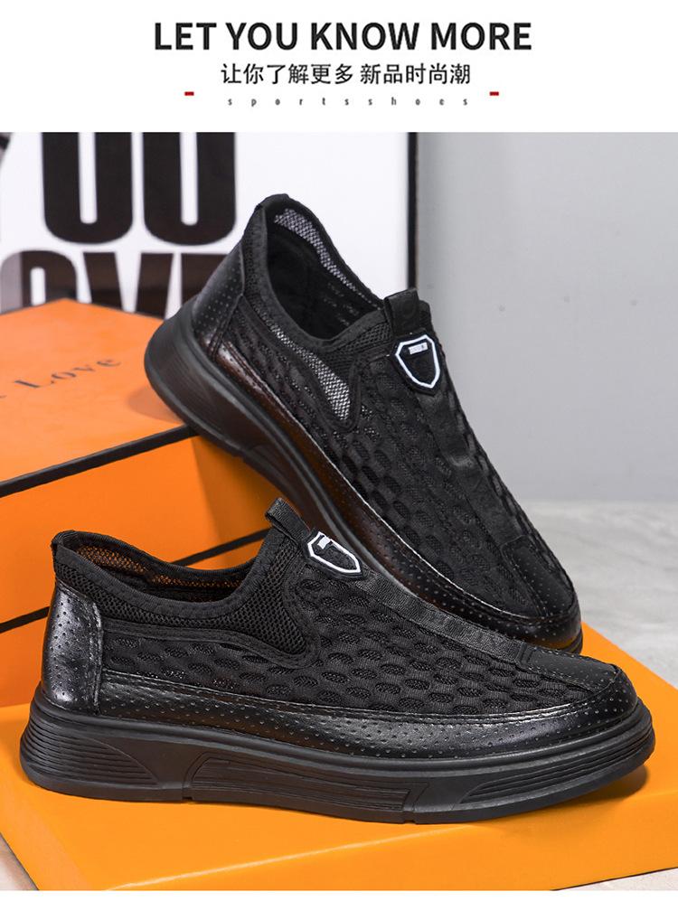Zapatos casuales de cuero de malla para hombre, de verano, modernos, de malla, con suela suave, antideslizantes, transpirables, sin cordones, para negocios.