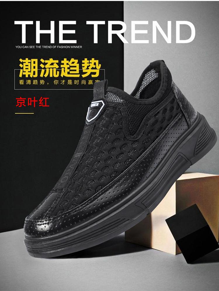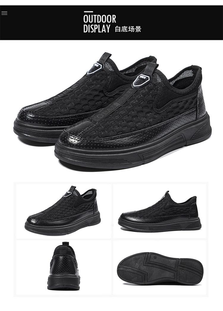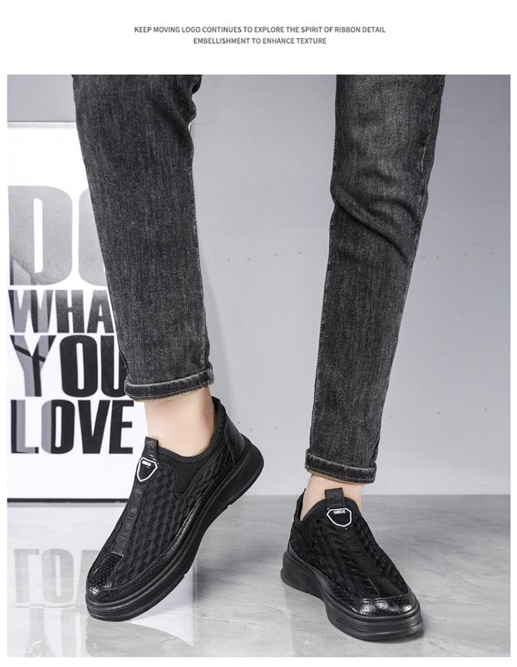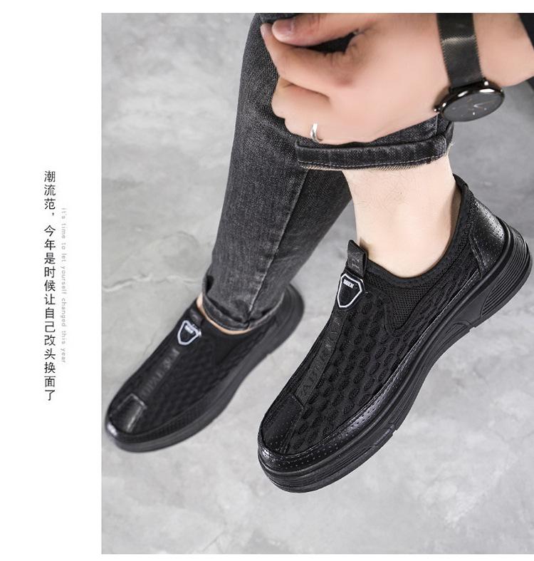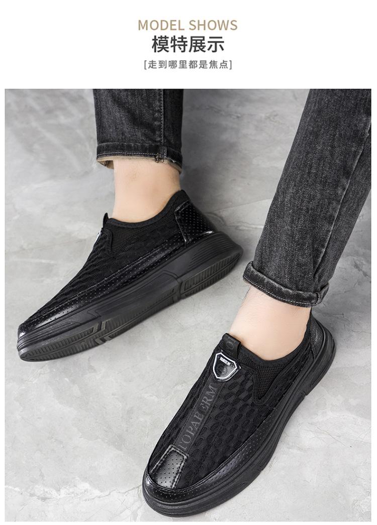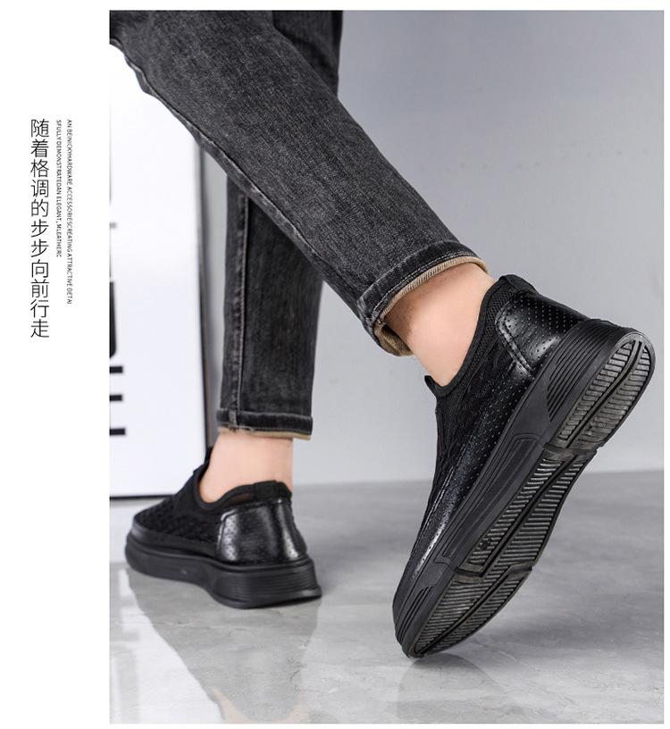 Zapatos casuales de cuero de malla para hombre, de verano, modernos, de malla, con suela suave, antideslizantes, transpirables, sin cordones, para negocios.