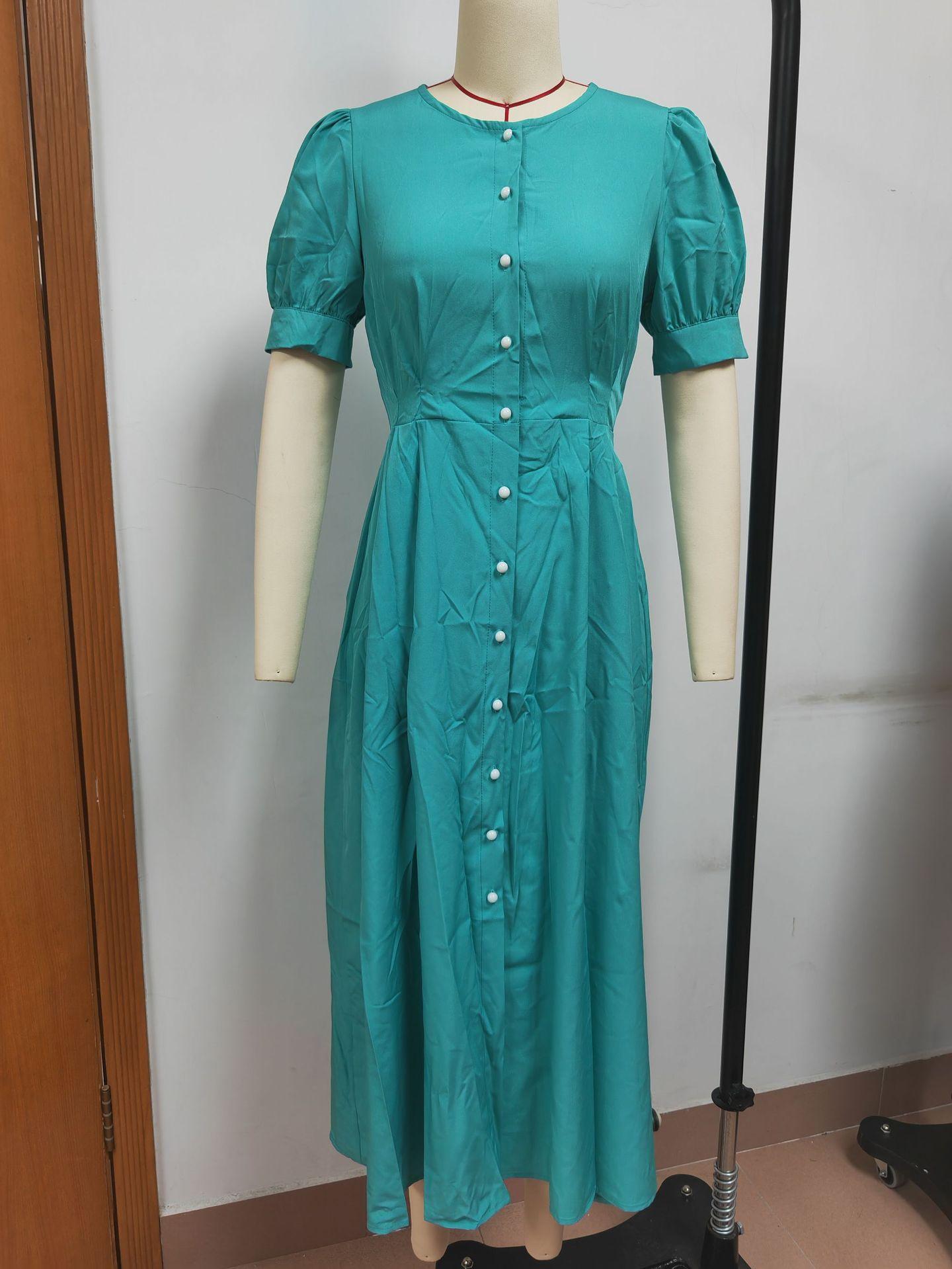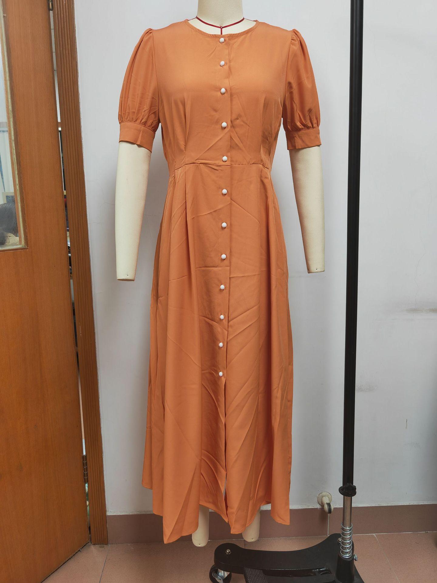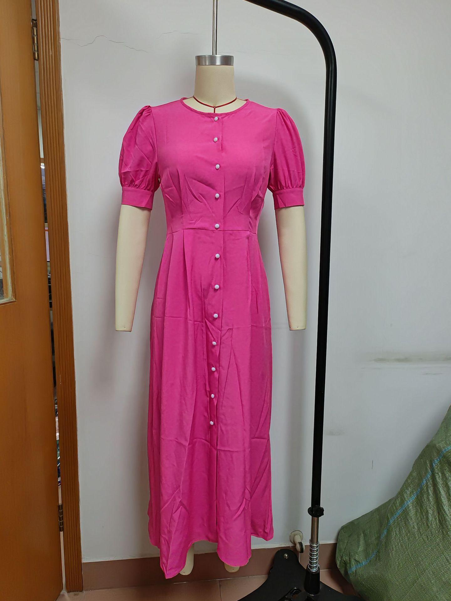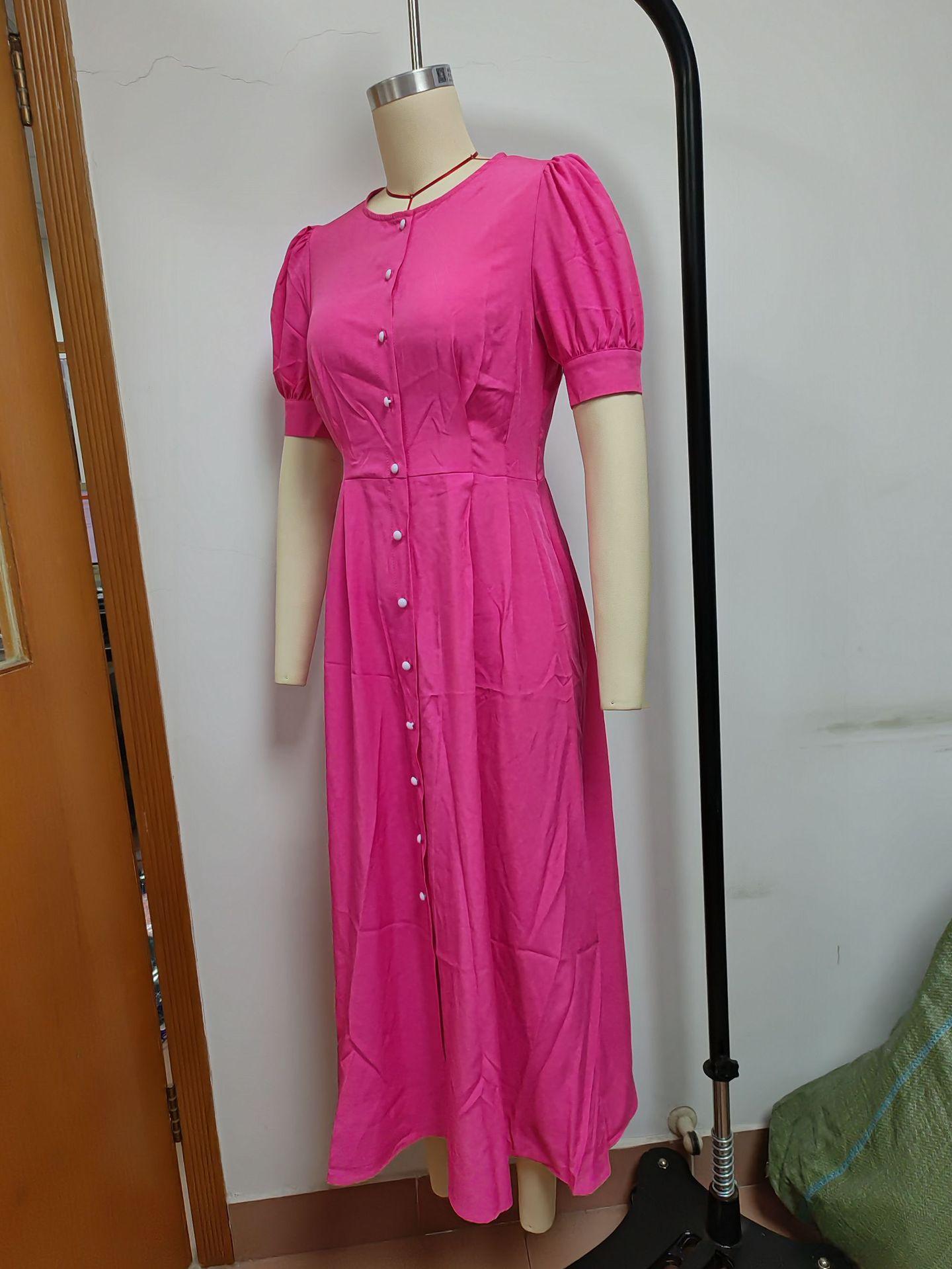 Compra Vestido de verano 2023 de Amazon, transfronterizo, europeo y americano, nuevo, elegante, ajustado, de cintura alta, con botones y longitud media. al por mayor en Joom.pro