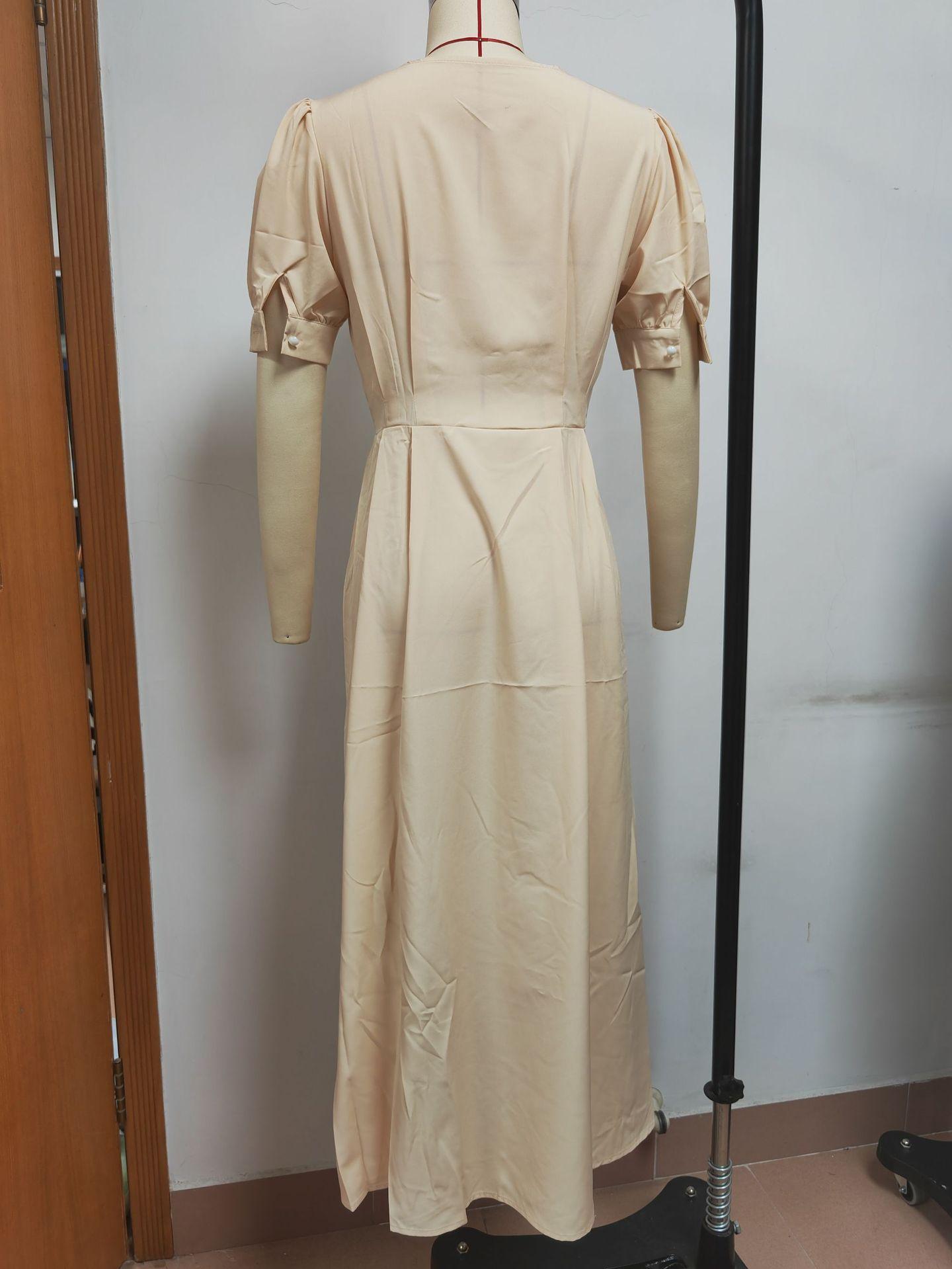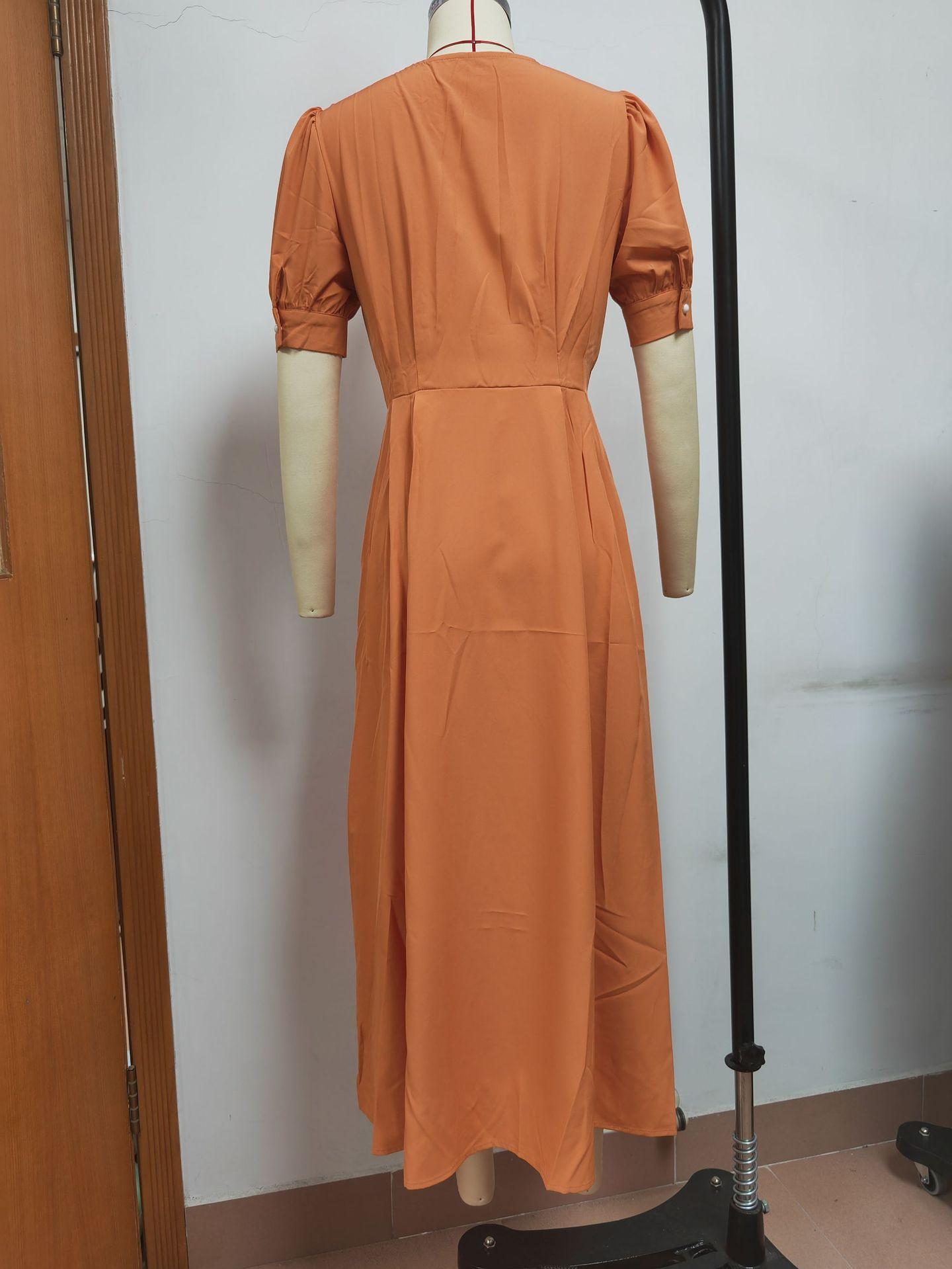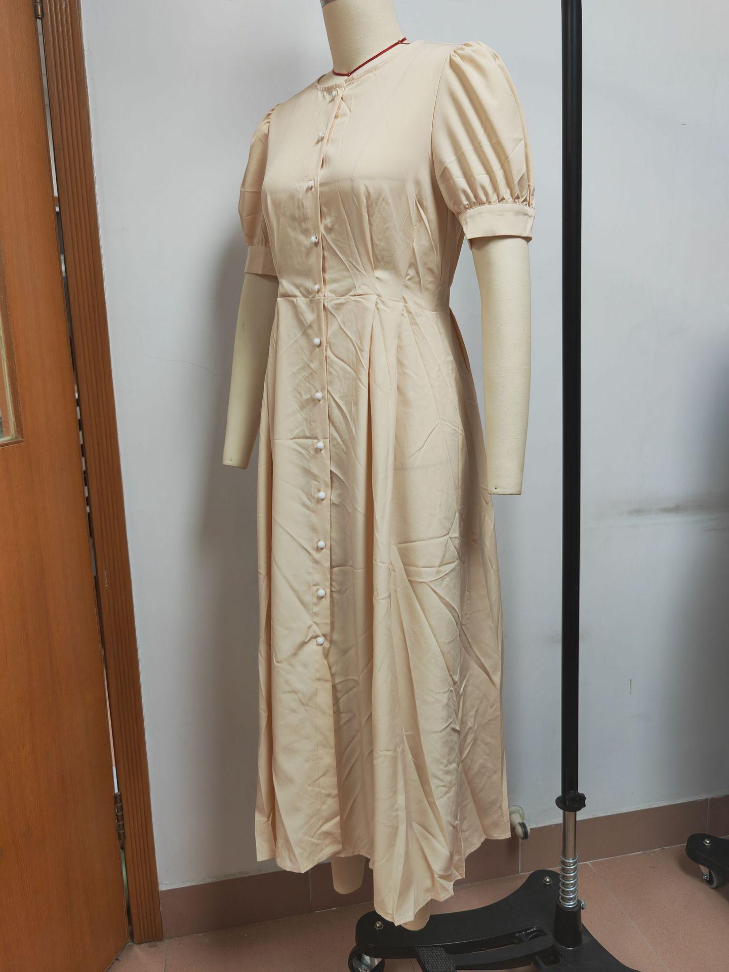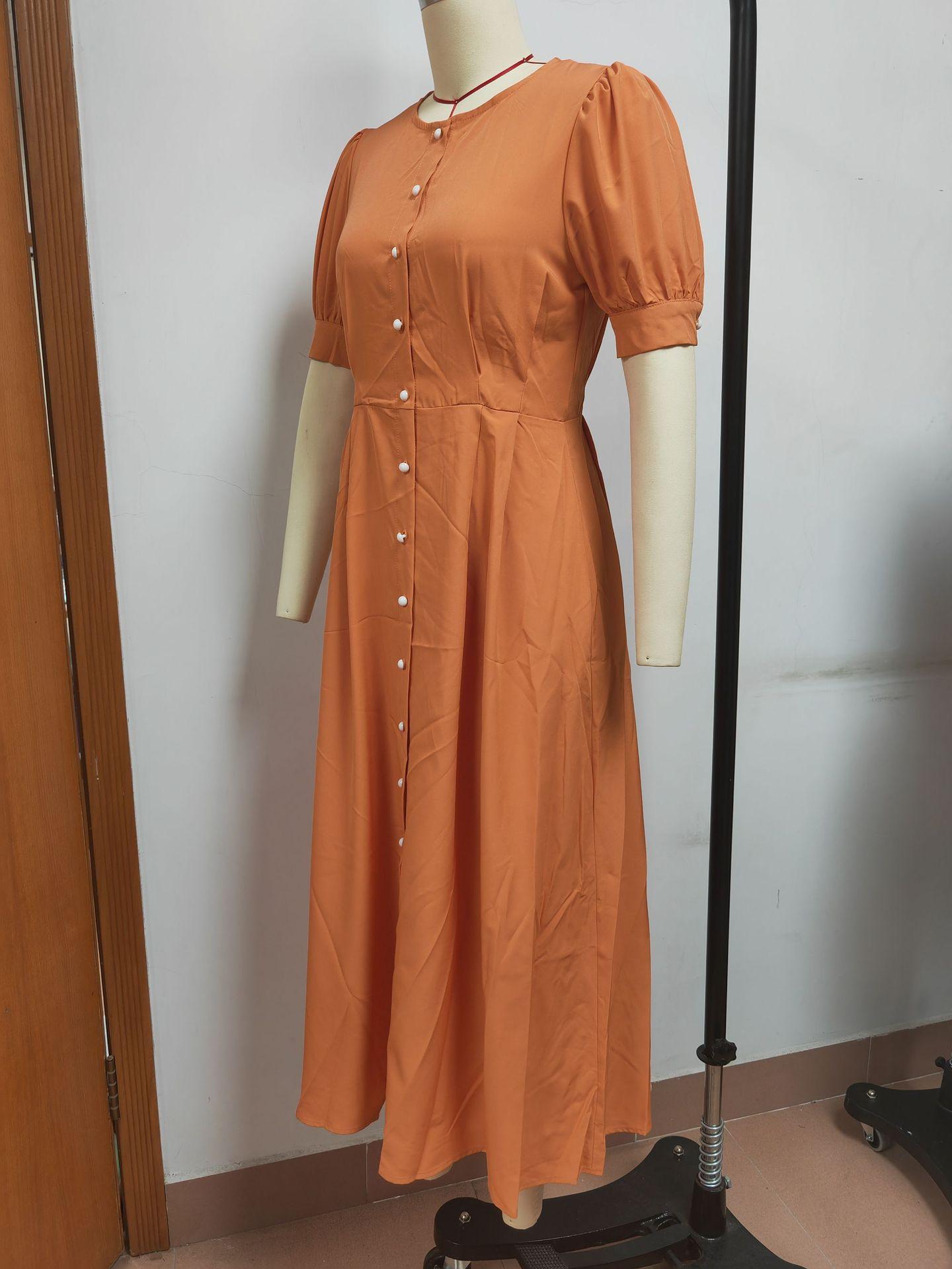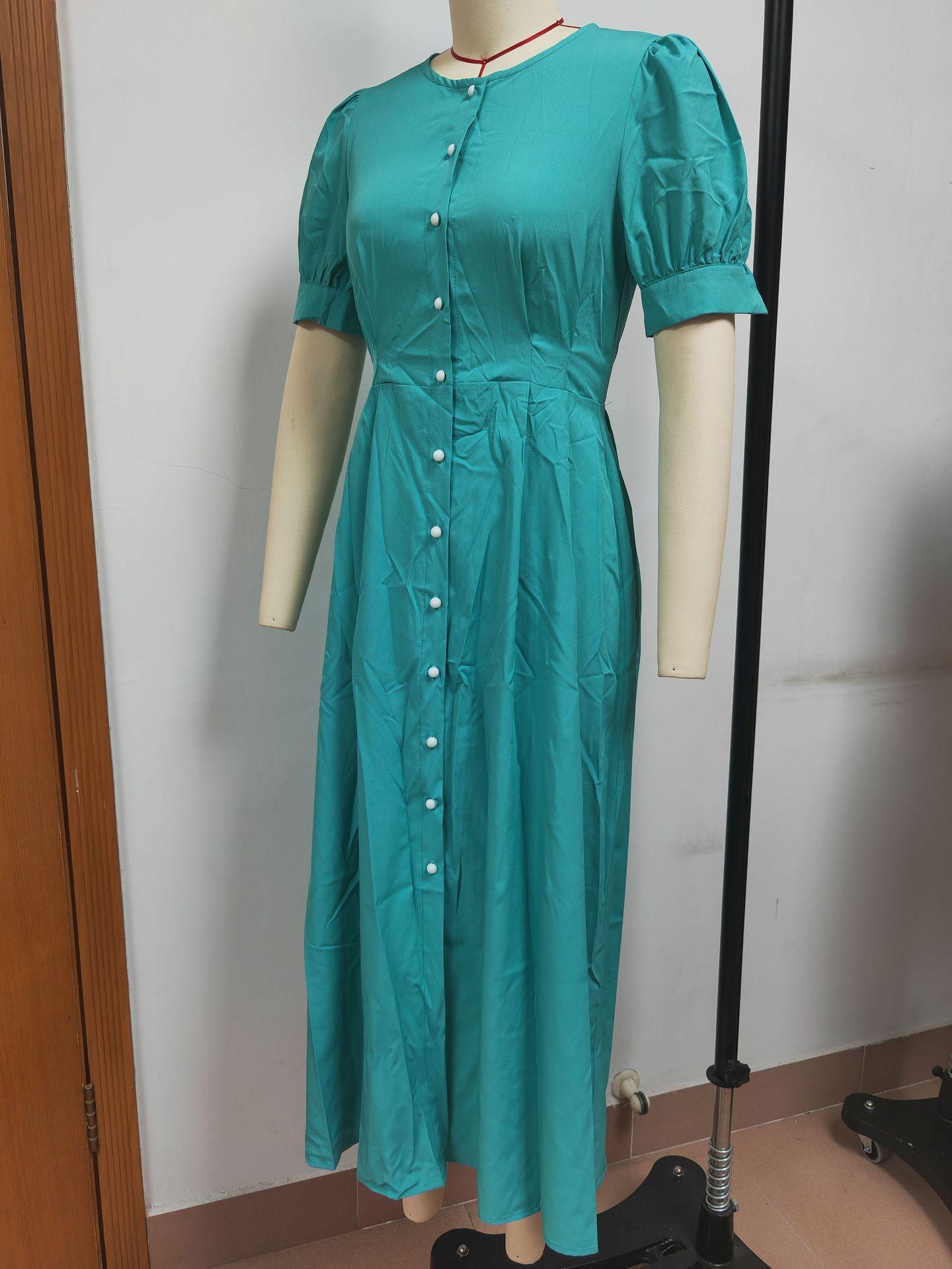 Compra Vestido de verano 2023 de Amazon, transfronterizo, europeo y americano, nuevo, elegante, ajustado, de cintura alta, con botones y longitud media. al por mayor en Joom.pro