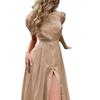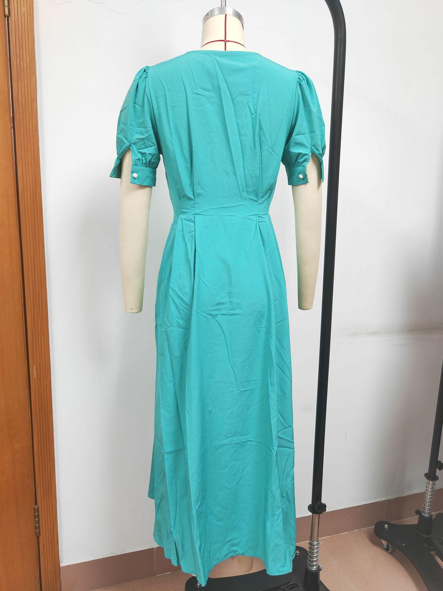 Vestido de verano 2023 de Amazon, transfronterizo, europeo y americano, nuevo, elegante, ajustado, de cintura alta, con botones y longitud media.