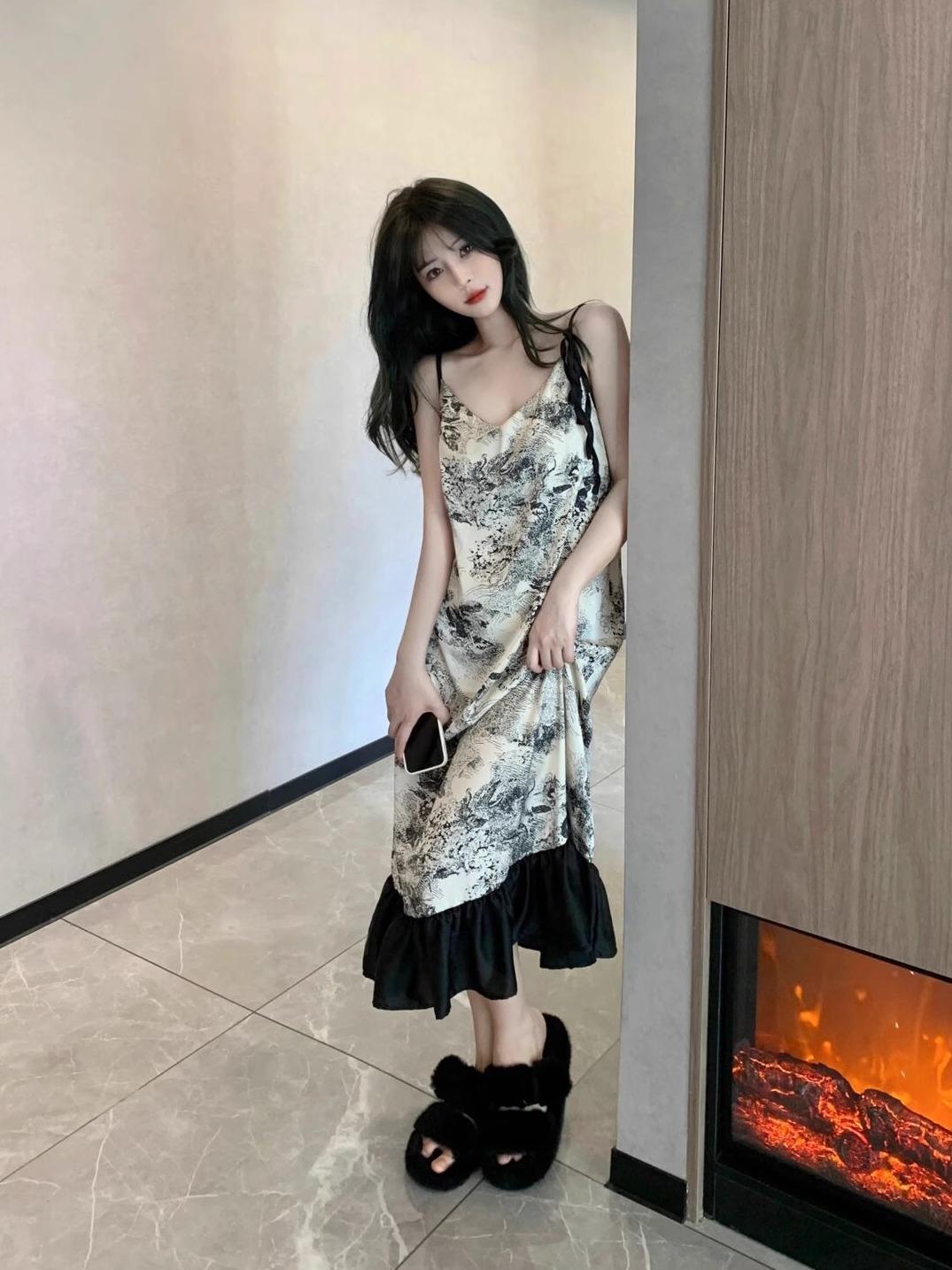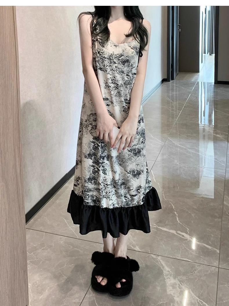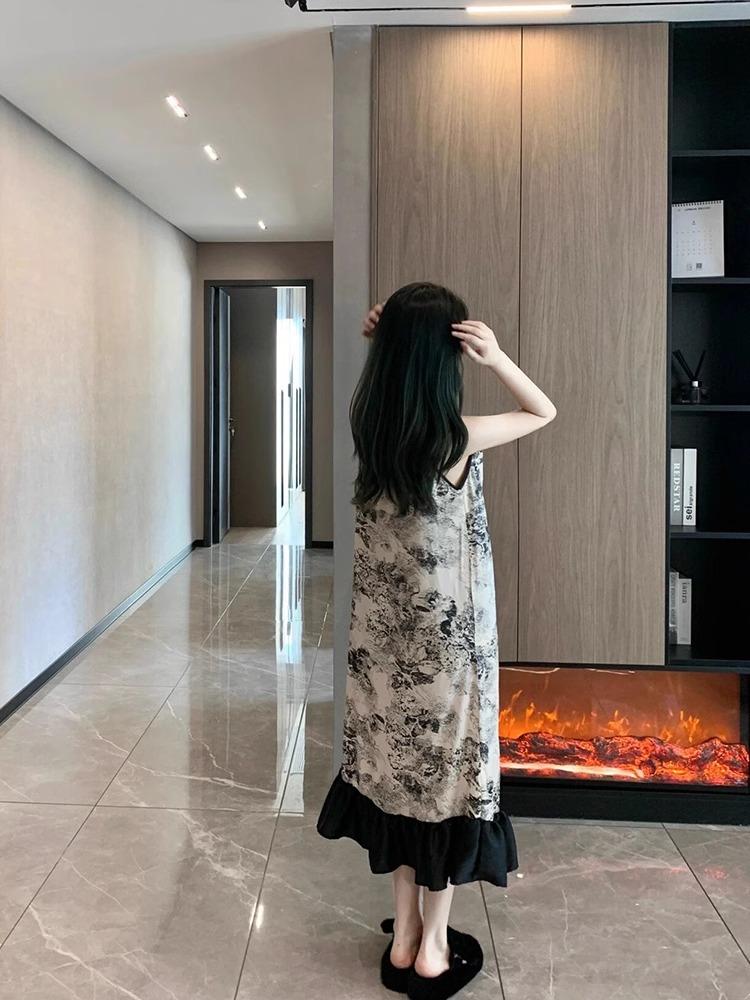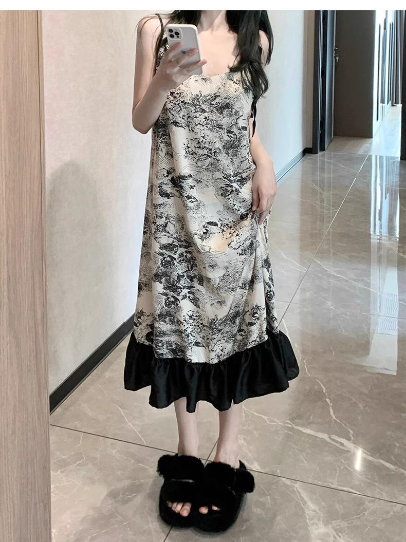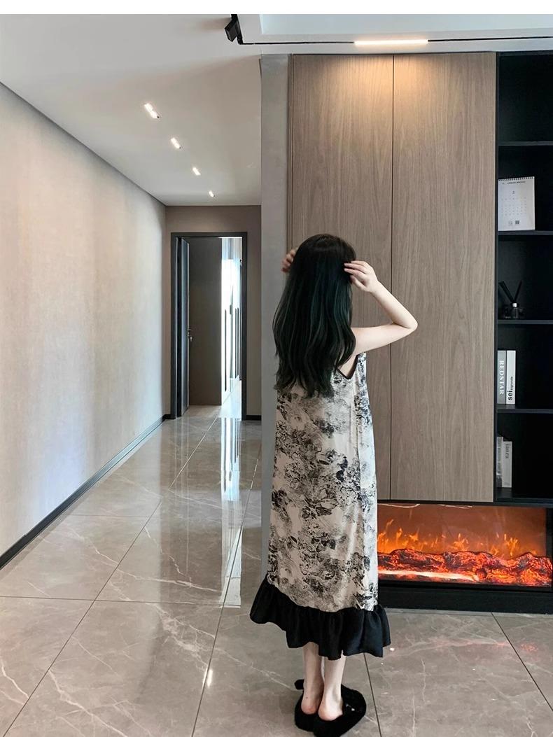 Ink painting nightdress [with chest pad]]