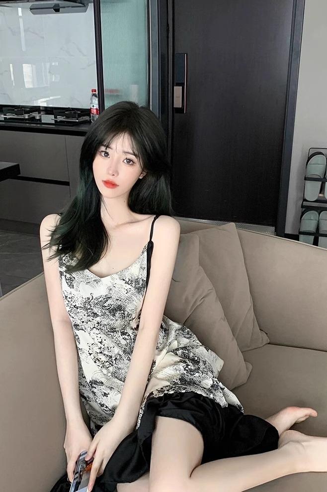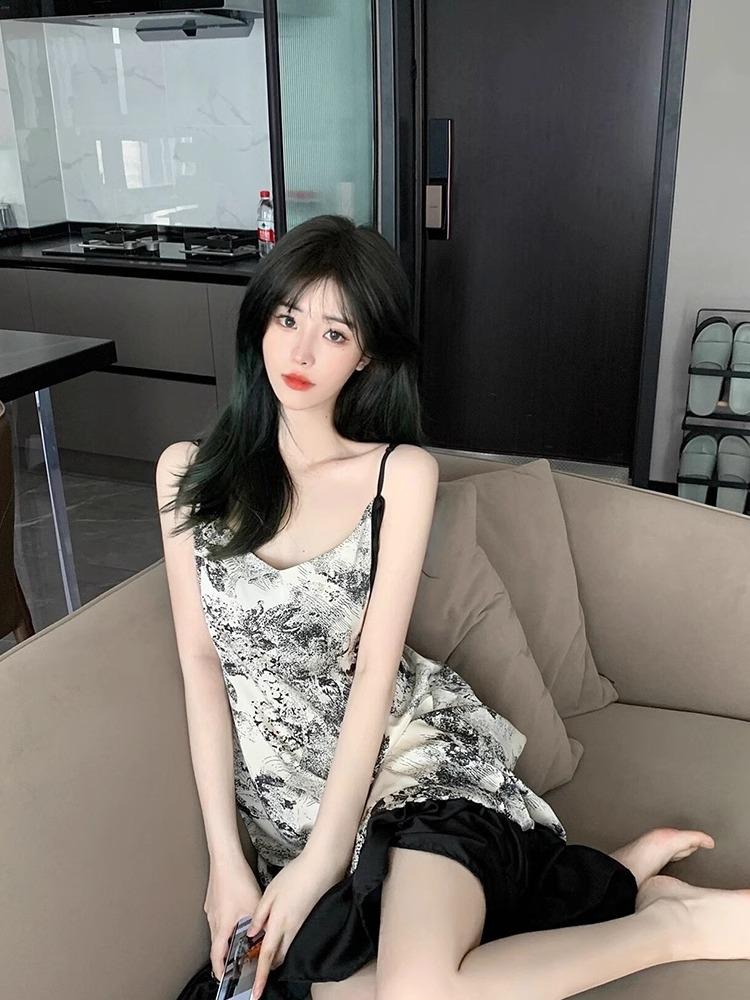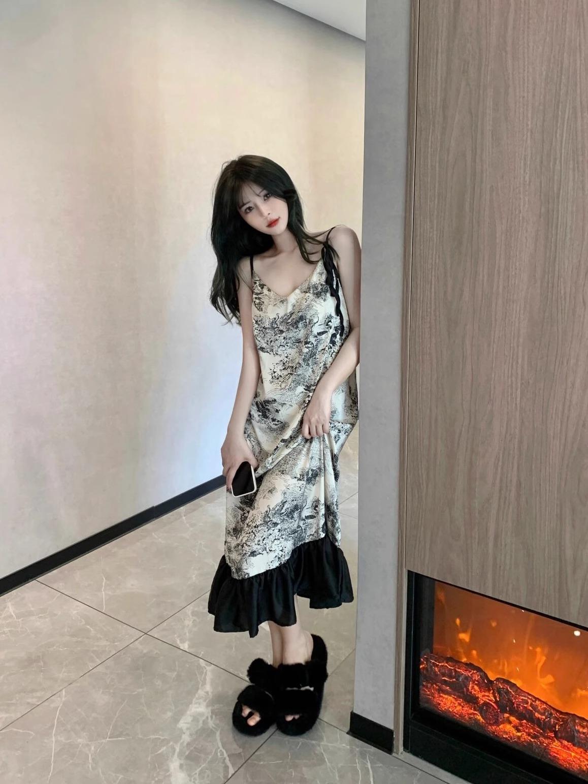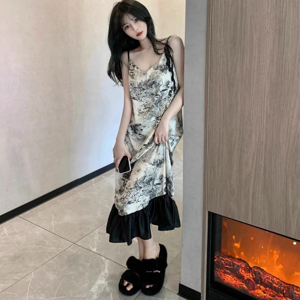 Ink painting nightdress [with chest pad]]