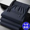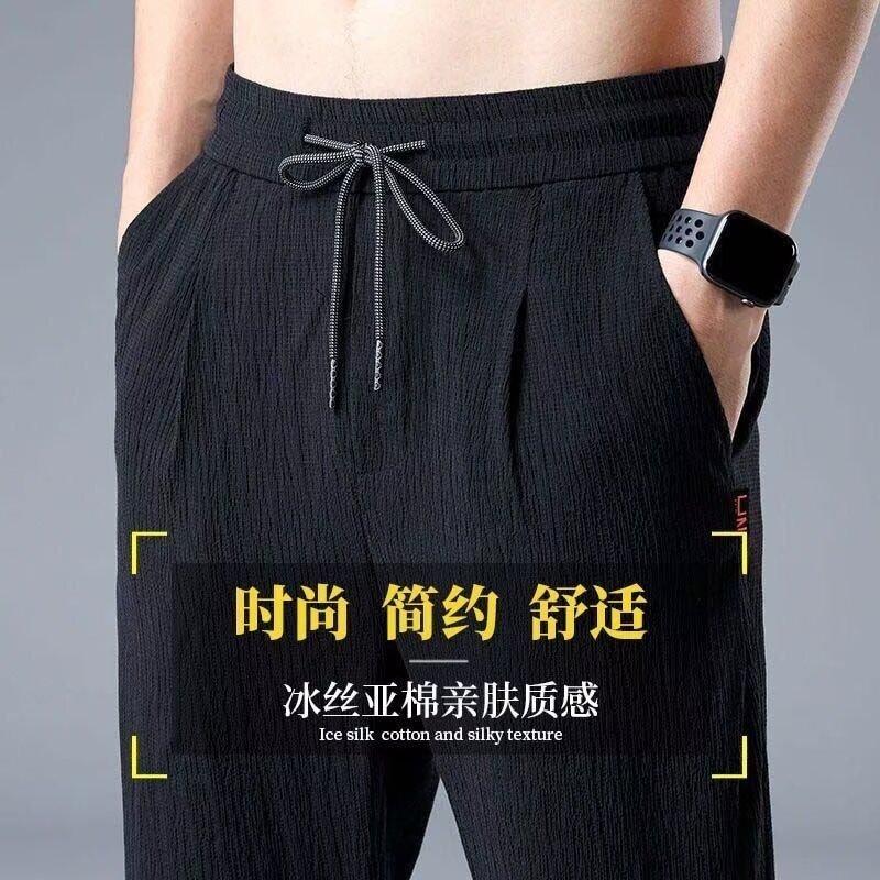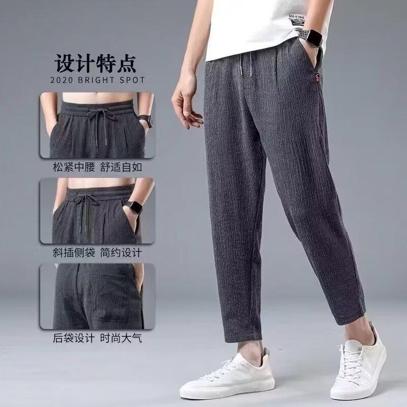 Pantalones de Hombre Primavera y Verano Lino Ultrafino Suelto Transpirable Pantalones Casuales de Hombre Rectos Pantalones de Verano