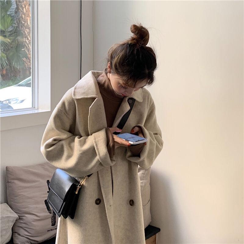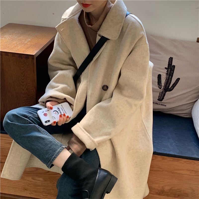 Compra Abrigo de Lana Estilo Coreano para Mujer 2023 Otoño e Invierno Nueva Moda Largo Medio Suelto Combinable Abrigo de Lana Moderno para Petite al por mayor en Joom.pro