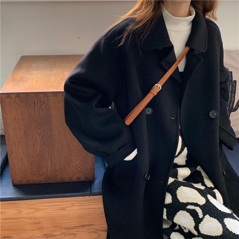 Abrigo de Lana Estilo Coreano para Mujer 2023 Otoño e Invierno Nueva Moda Largo Medio Suelto Combinable Abrigo de Lana Moderno para Petite