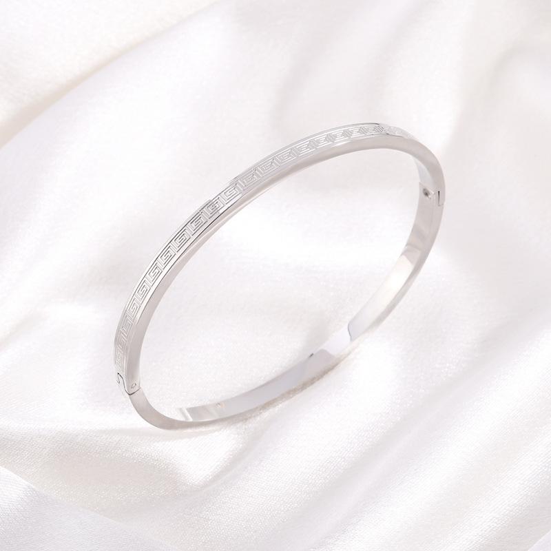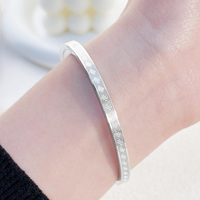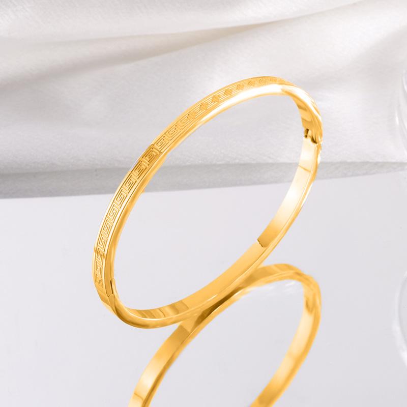 Pulsera de acero de titanio estilo chino con diseño de la Gran Muralla para mujer, resistente a la caída, de acero inoxidable de alta calidad y combinable.