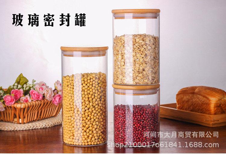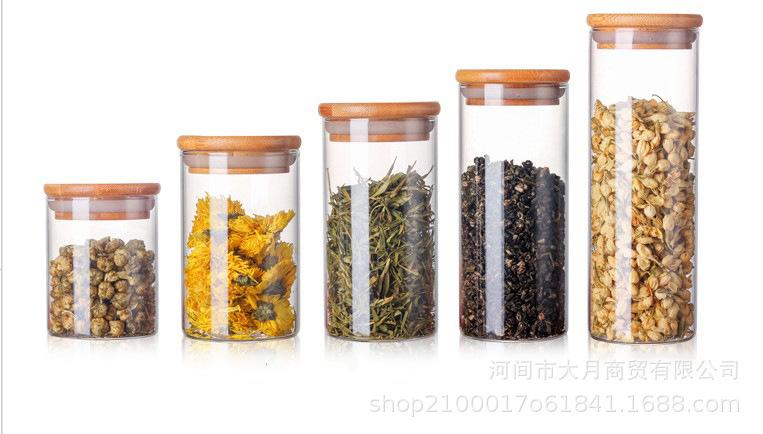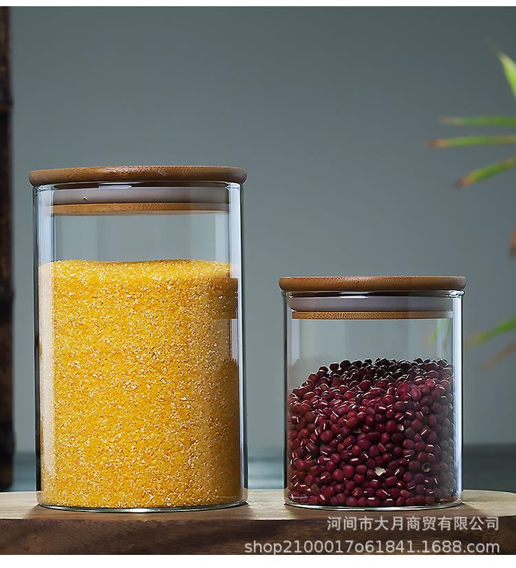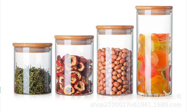 Frasco redondo de vidrio de borosilicato alto sellado, frasco de vidrio para té, cereales, dulces y frutas secas, frasco de almacenamiento