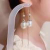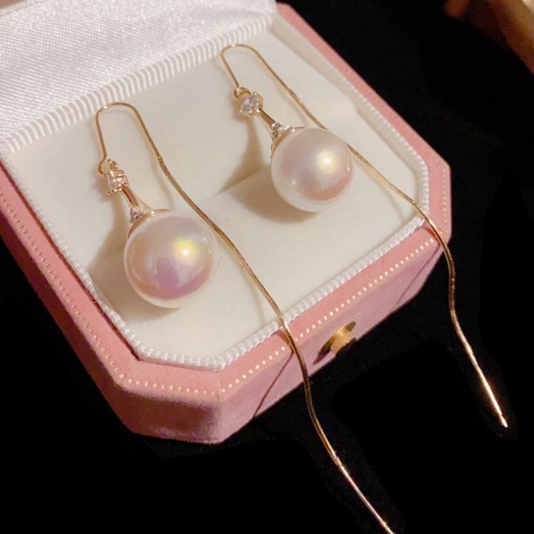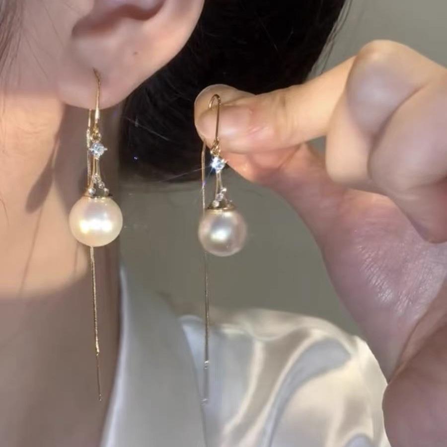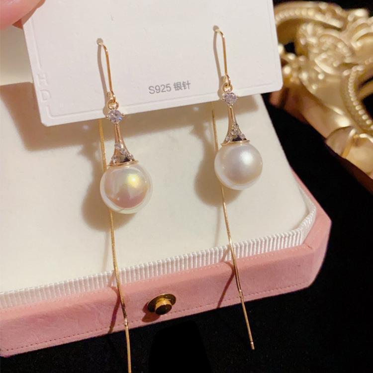 Super Hada Borla Larga de Perlas Alambre para Oreja Celebridad de Internet Personalizado Lujo Ligero Pendiente Gota Nuevo Estilo Elegante Rostro Delgado Joyería para Oreja