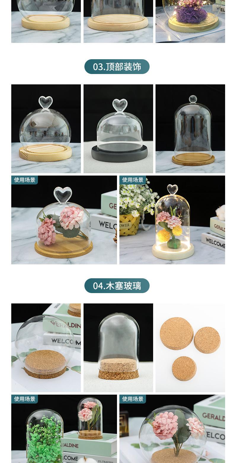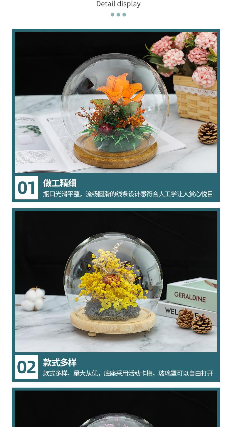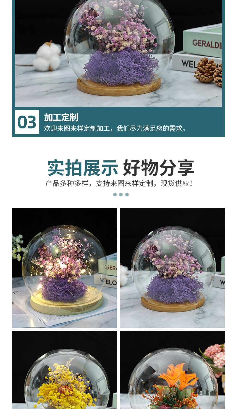 Venta al por mayor de fábrica, cubierta de vidrio esférica, cubierta de polvo de flor eterna, bola de vidrio hueca con luz, bola de decoración de escritorio de estilo ins