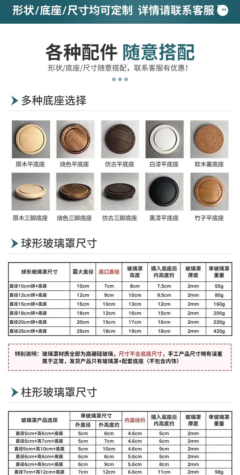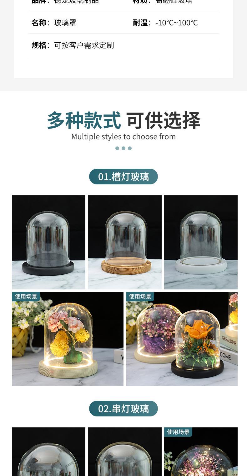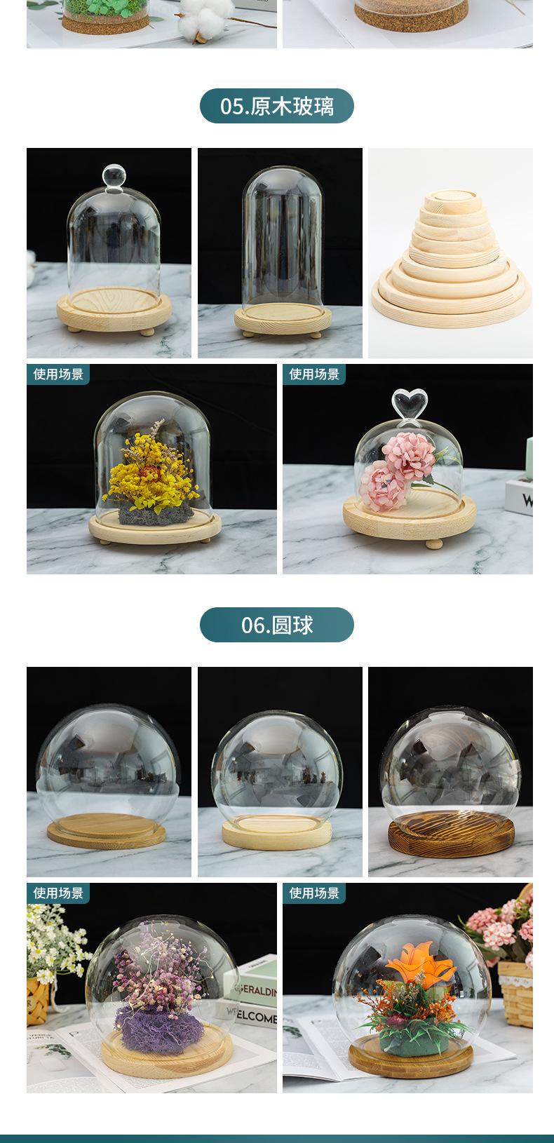 Venta al por mayor de fábrica, cubierta de vidrio esférica, cubierta de polvo de flor eterna, bola de vidrio hueca con luz, bola de decoración de escritorio de estilo ins