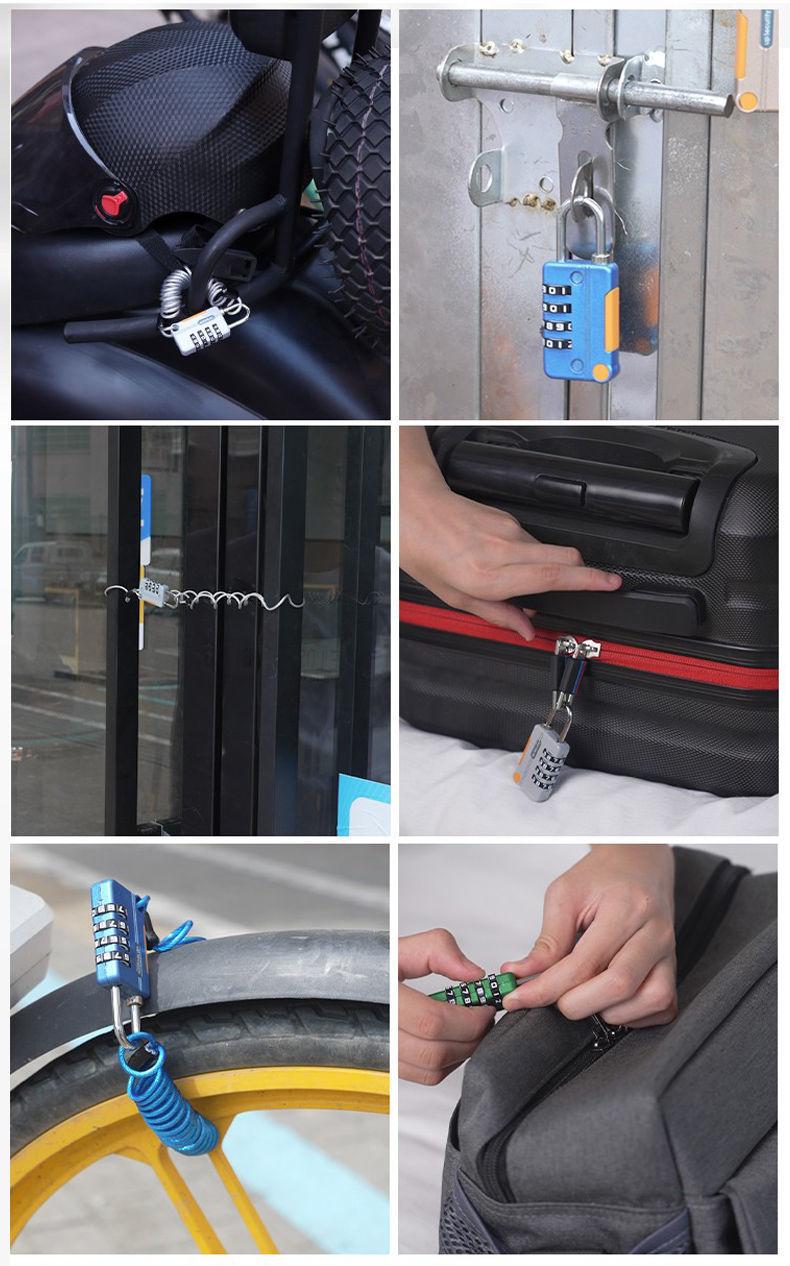 Candado de contraseña impermeable para armario de dormitorio, candado de contraseña, cremallera para equipaje, candado para cesta, mini candado de contraseña con cable de acero, para exteriores