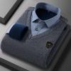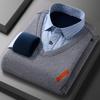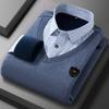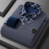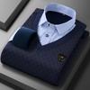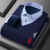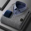 Camisa cálida de dos piezas falsa de invierno 2023, suéter informal de negocios de algodón grueso y polar para hombre